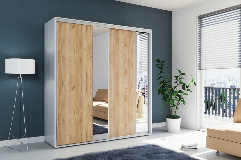 - Szafa posiada po 1 pionowym pasie lustra 0,25 m na obu frontach
