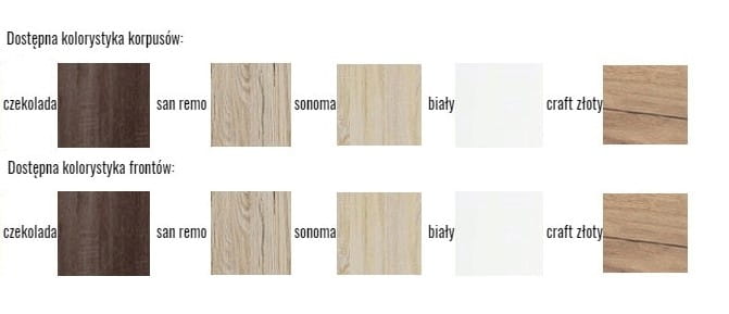 - Wykonana z wysokiej jakości płyty laminowanej o grubości 16 mm o podwyższonej odporności na zarysowania oraz okleiny PCV