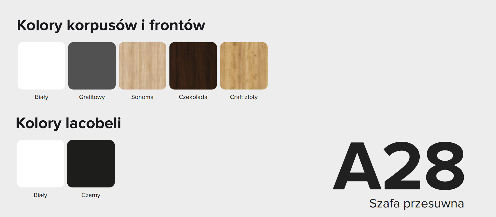 - Możliwość wyboru kolorystyki lacobelu: czarny, grafit, biały