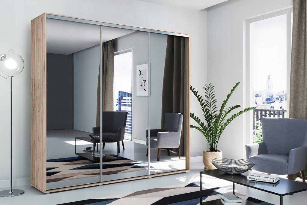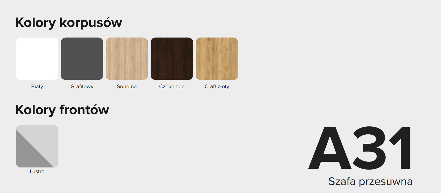 - Szafa posiada lustro na jednym froncie + połysk na dwóch frontach