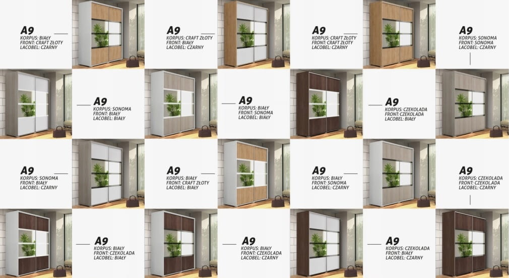 - FRONT: SONOMA, CZEKOLADA, TRUFLA, CRAFT ZŁOTY, BIAŁY, CRAFT BIAŁY ( DO WYBORU ) + LACOBEL: BIAŁY ( DO WYBORU ) + LUSTRO