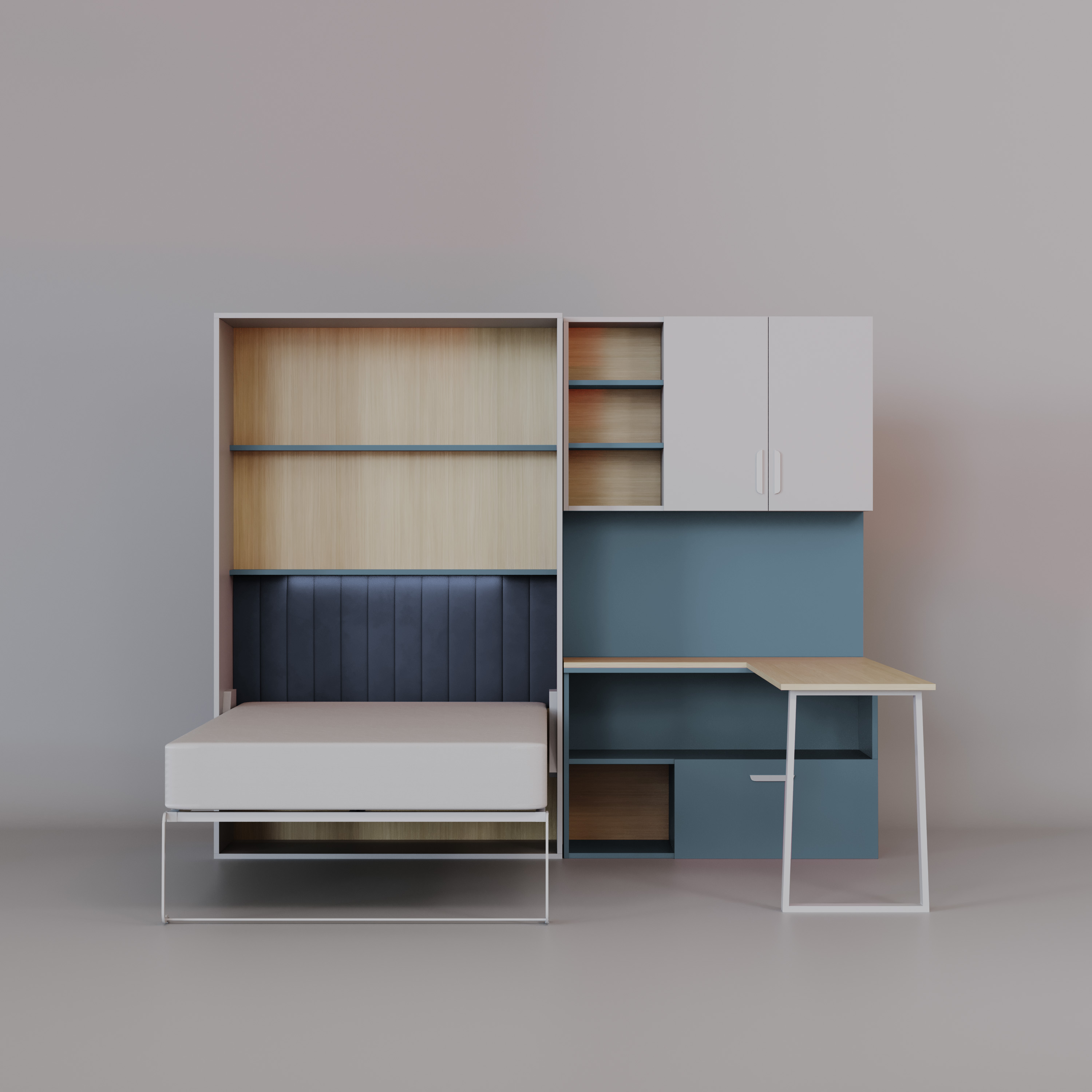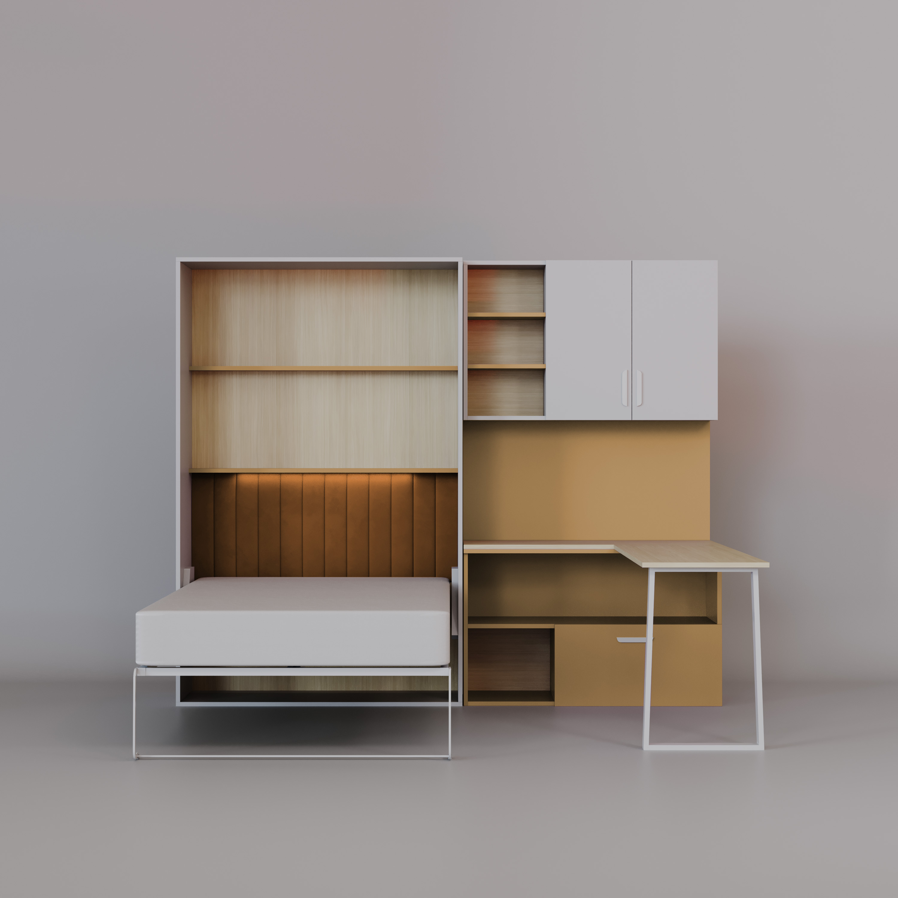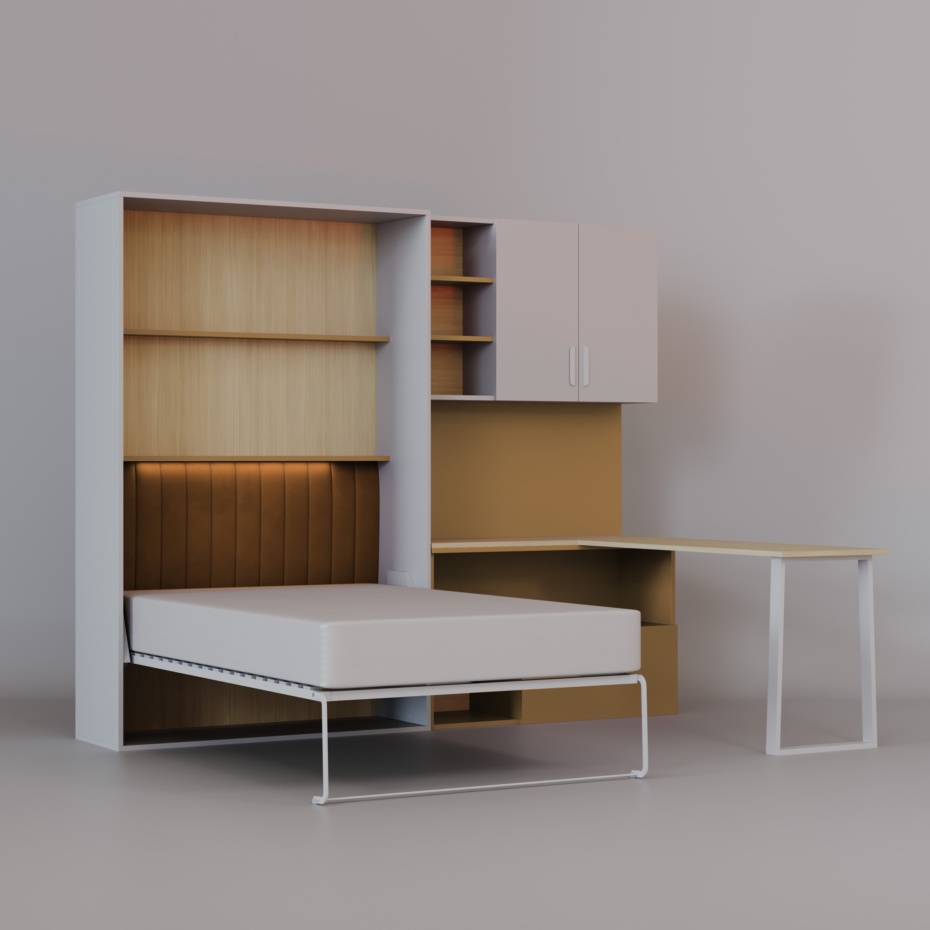 Półkotapczan LUMI z Biurkiem – Łóżko w Szafie 120x200 Łóżko skadane, biurko