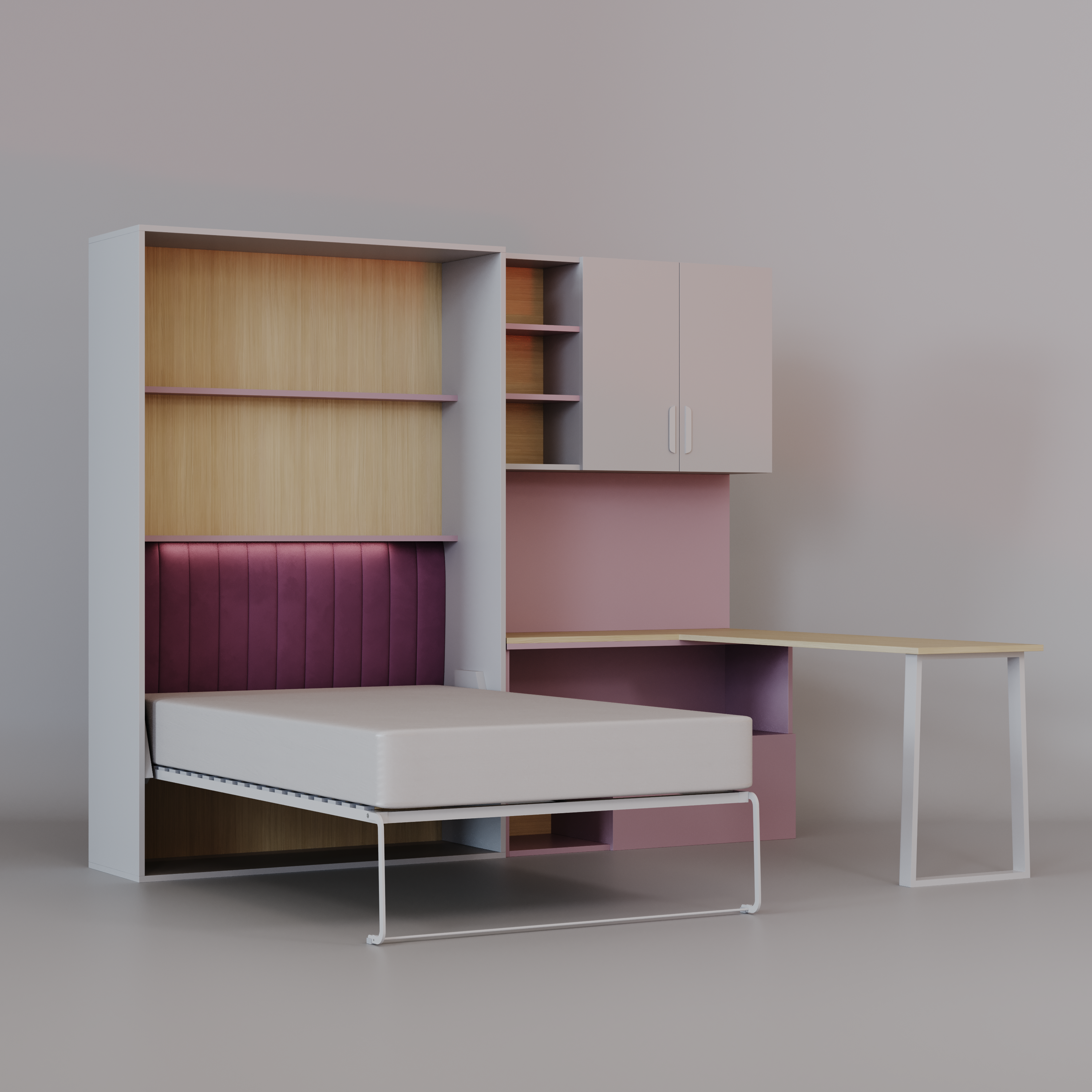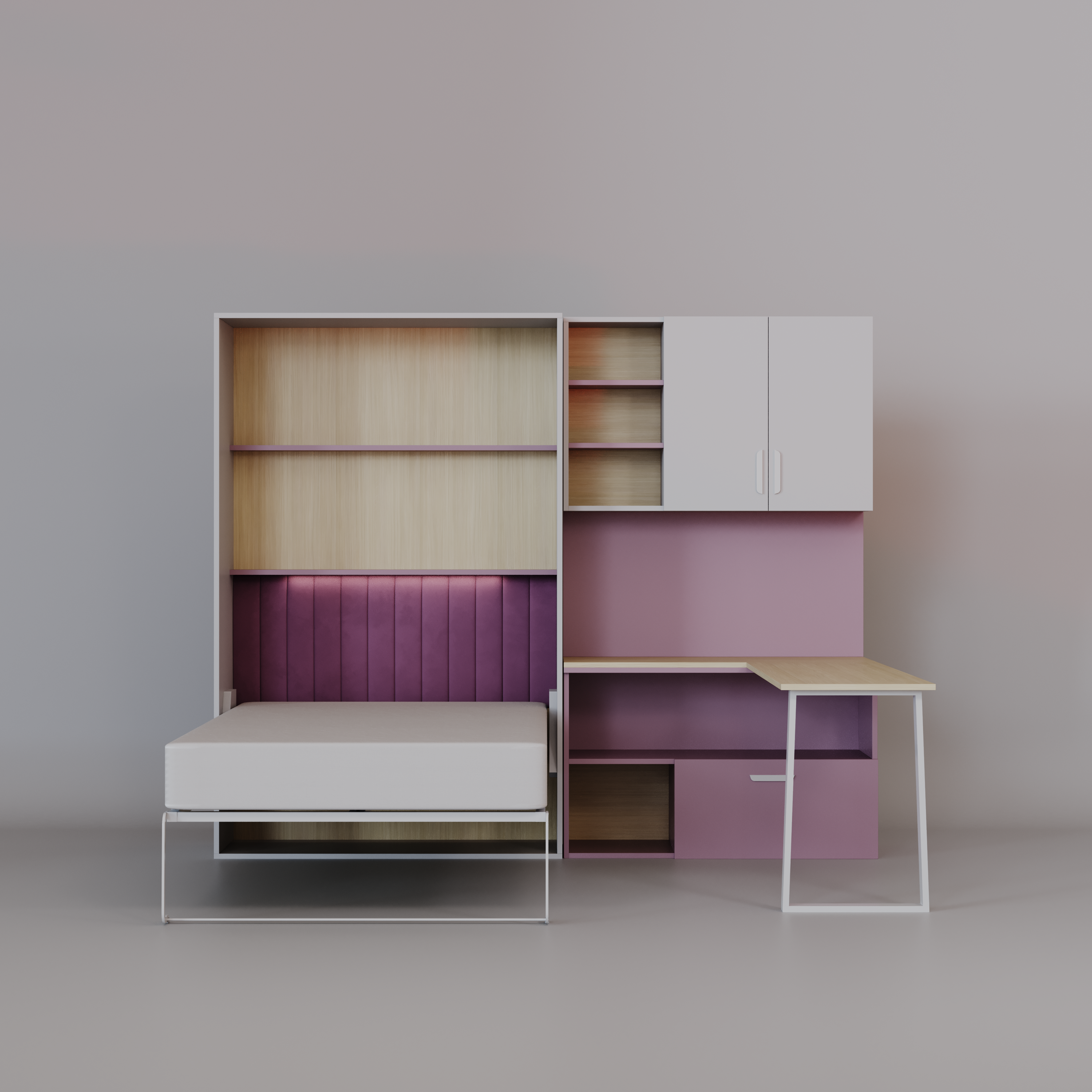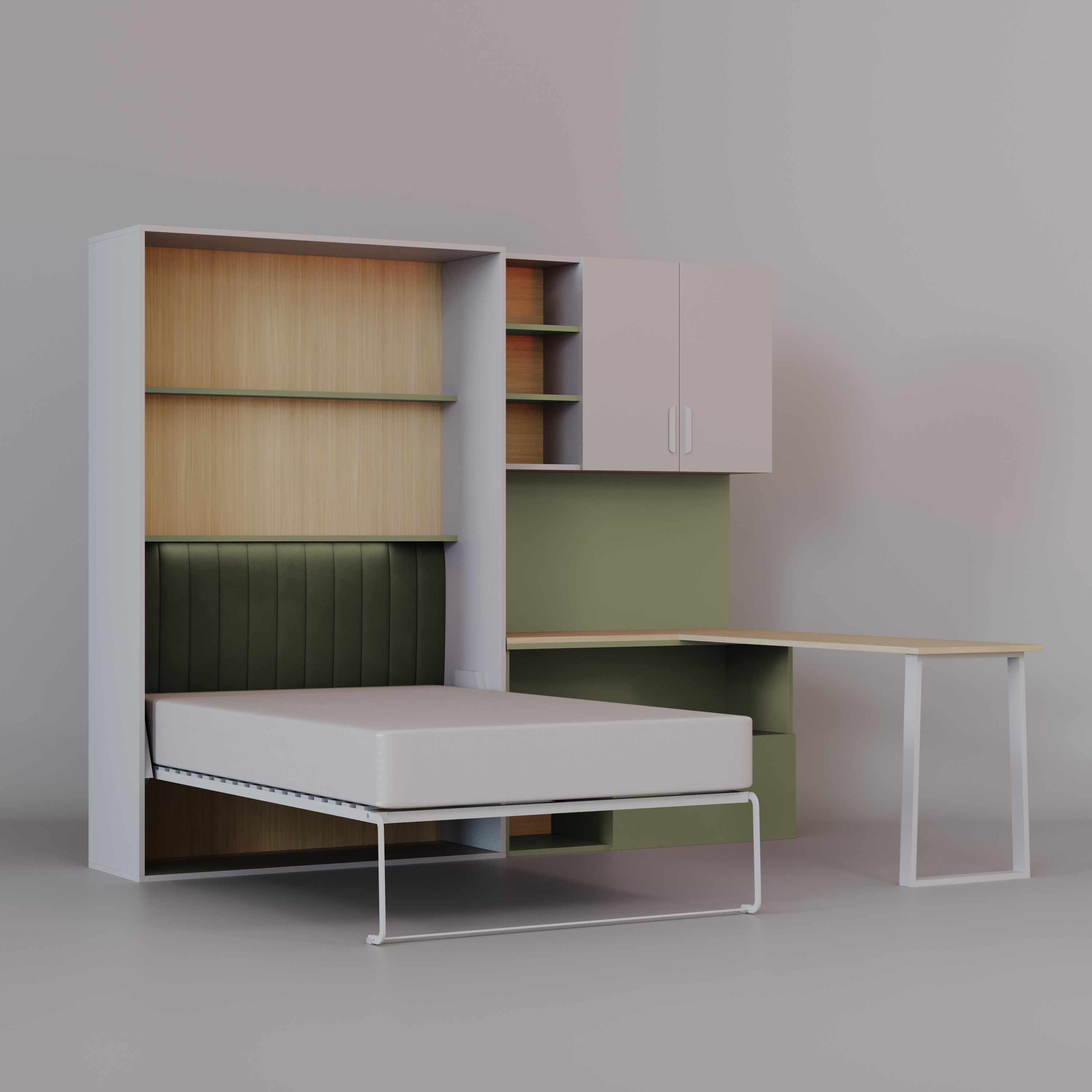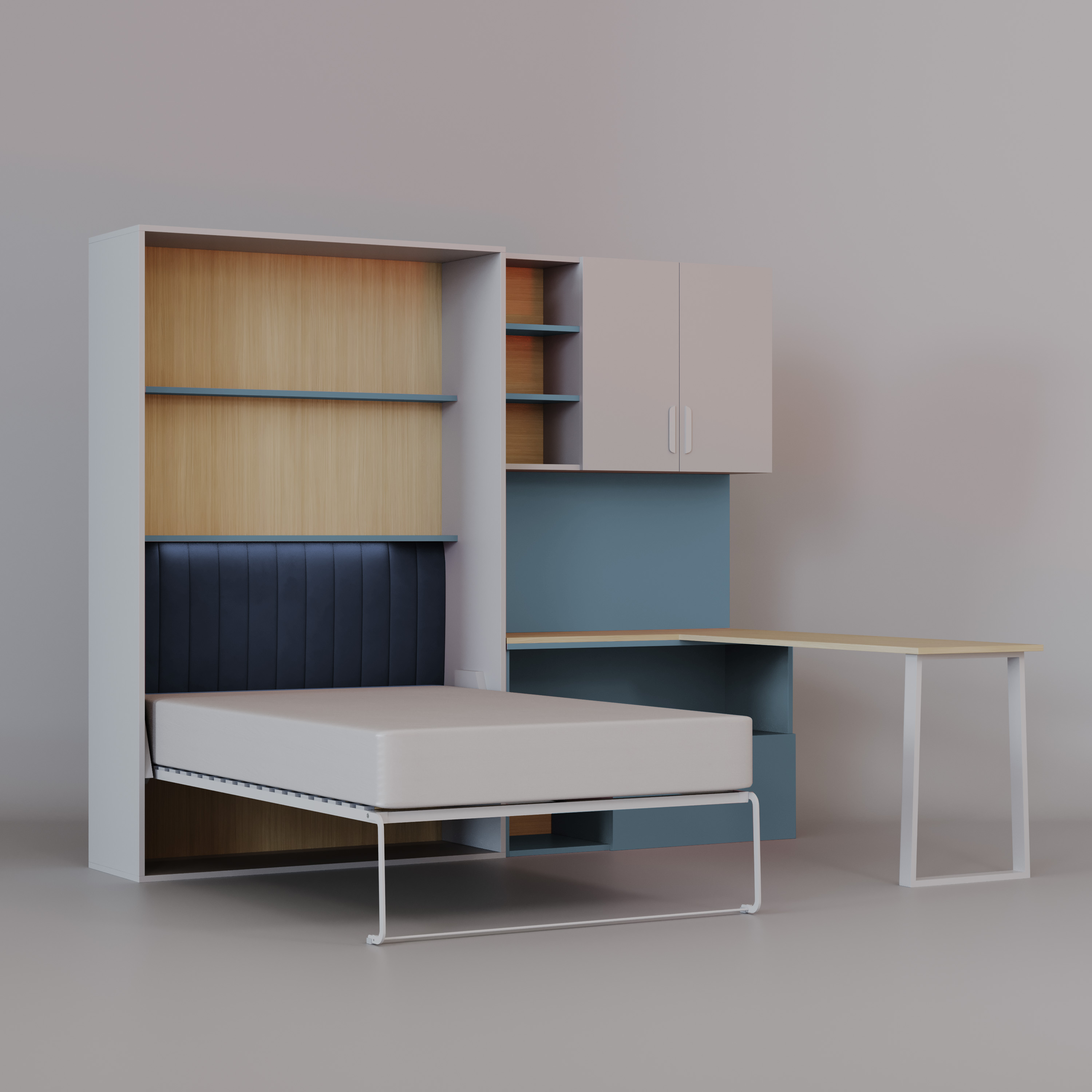 Półkotapczan LUMI z Biurkiem – Łóżko w Szafie 120x200 Łóżko skadane, biurko