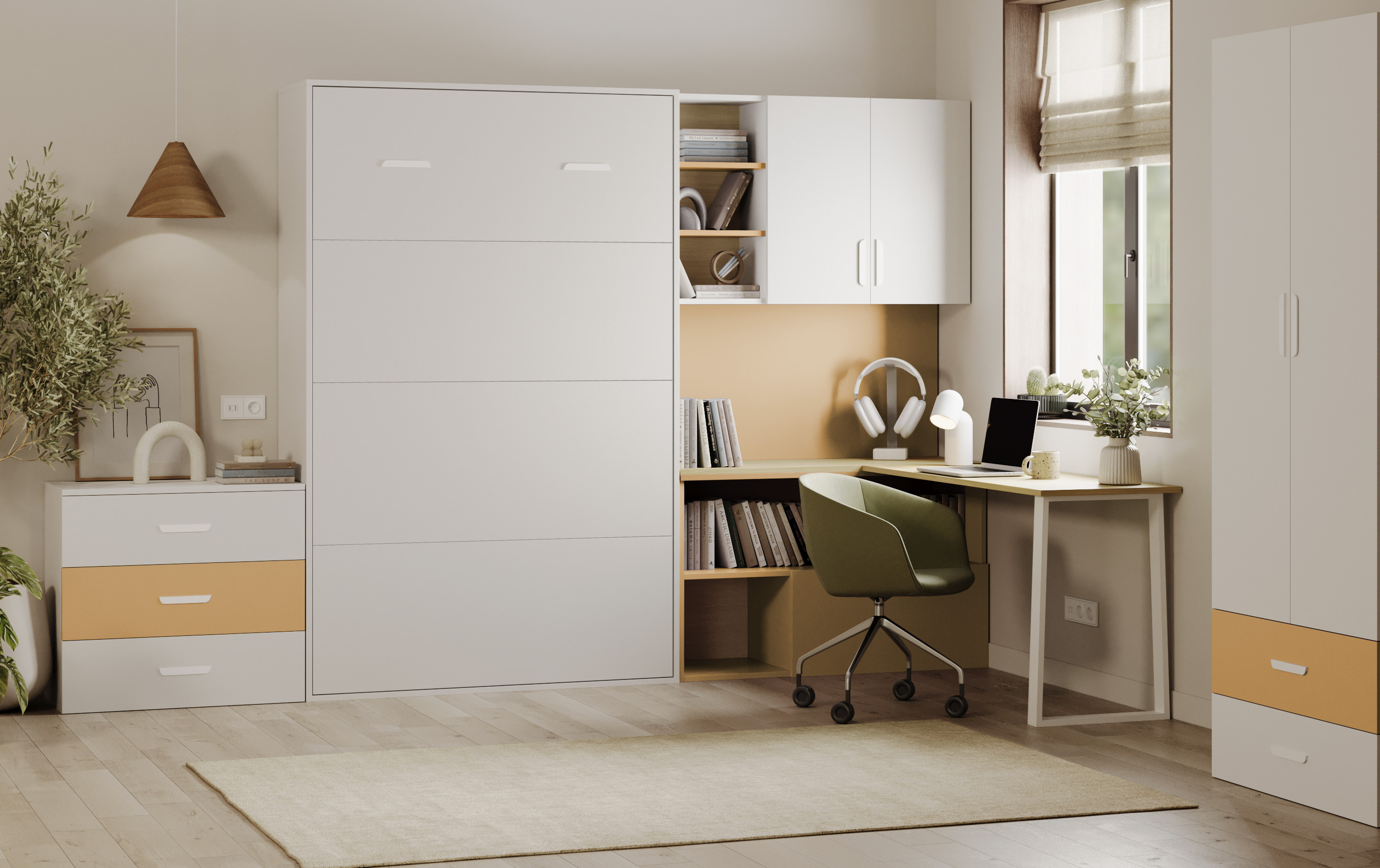 Przemyślana konstrukcja, solidne materiały i praktyczne rozwiązania sprawiają, że LUMI to mebel, który spełni wszystkie Twoje oczekiwania. A co najważniejsze – wszystko to bez kompromisów między przestrzenią do pracy a komfortem snu.