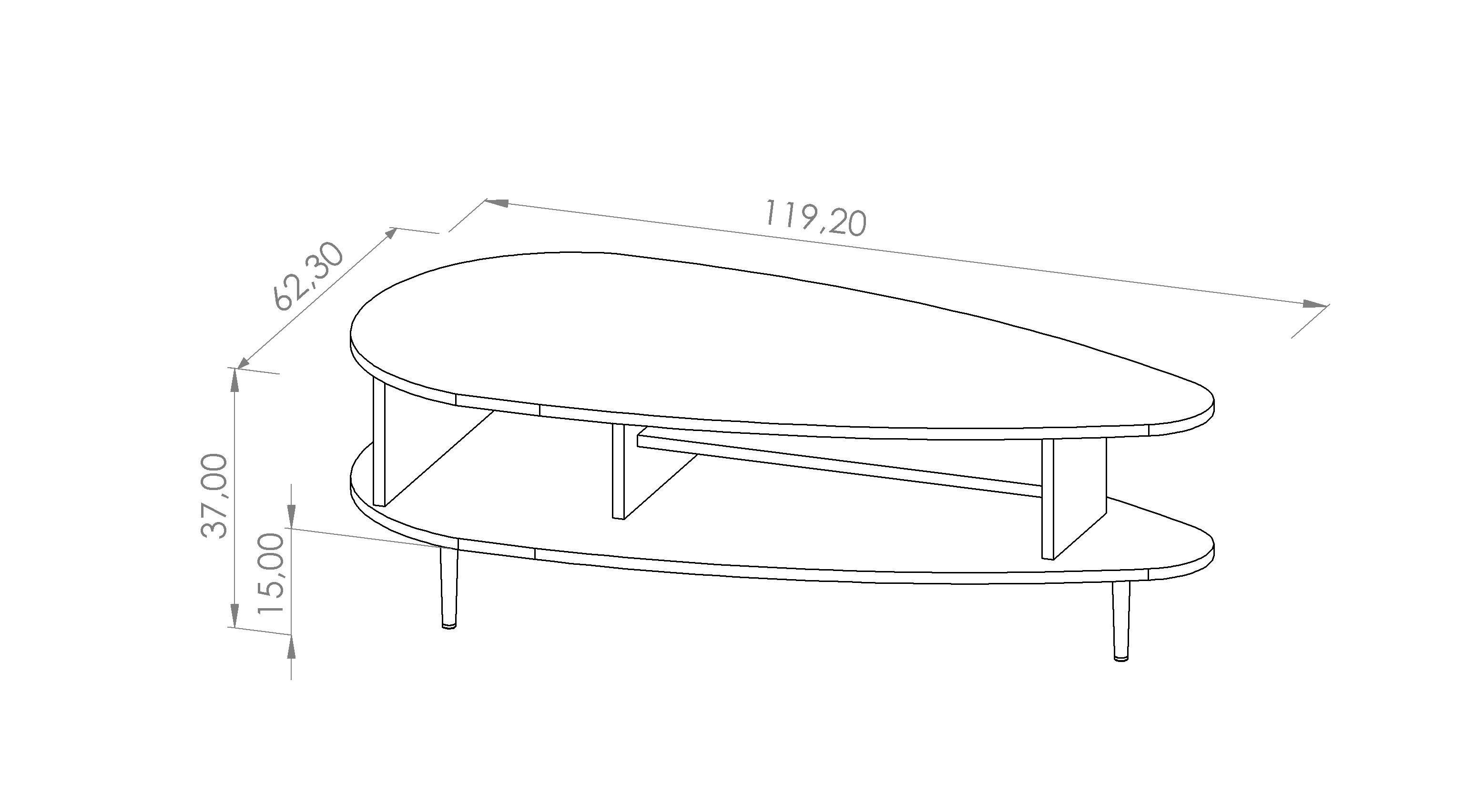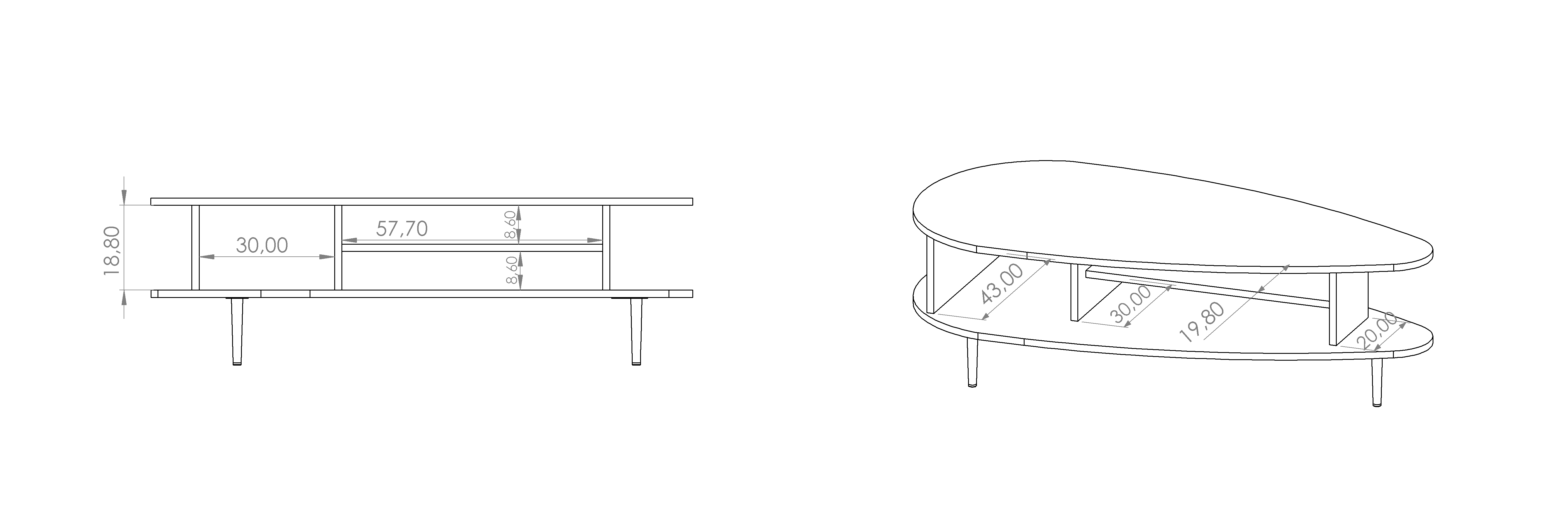 - Stolik został wykonany z płyty wiórowej o grubości 16 mm.