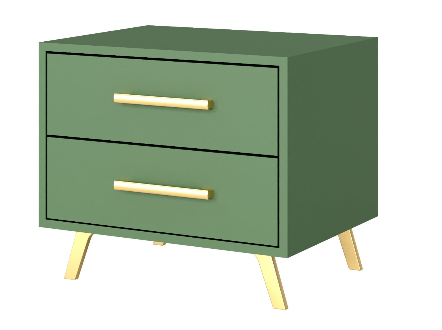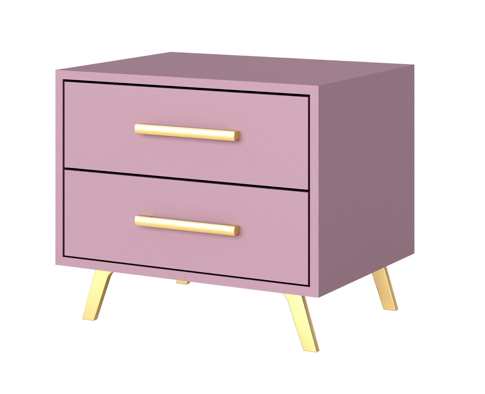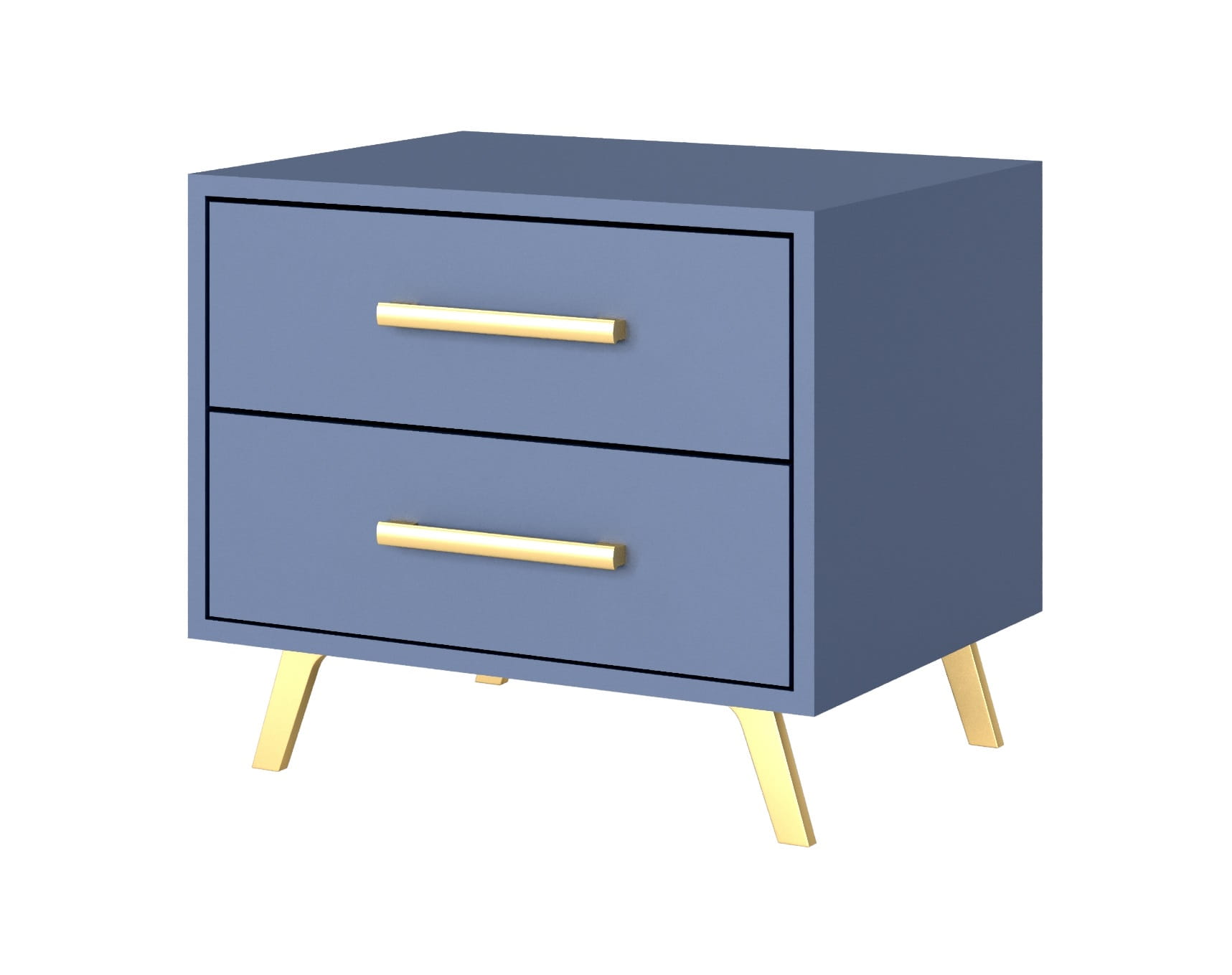 Szafka nocna BALI z dwiema szufladami. Wykonane jest z płyty laminowanej o grubości 16 mm o podwyższonej odporności na zarysowania. Płyta laminowana odporna na zarysowania, uszkodzenia, wilgoć i wysoką temperaturę. Uchwyty w kolorze złotym. Obrzeża wykończone całkowicie okleiną ABS. Meble w paczkach do samodzielnego montażu. Do mebli dołączamy instrukcję oraz wszystkie niezbędne akcesoria.