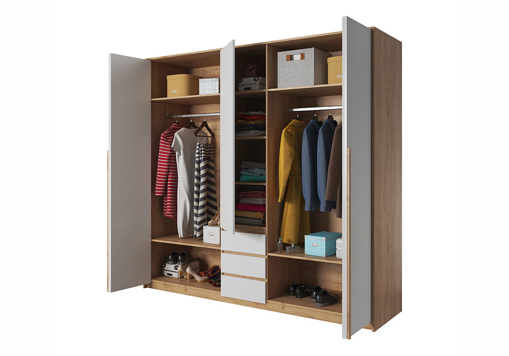 - Szafa odzieżowa wyposażona została w system otwierania drzwi przesuwno-składany w tzw. "harmonijkę" Hettich.