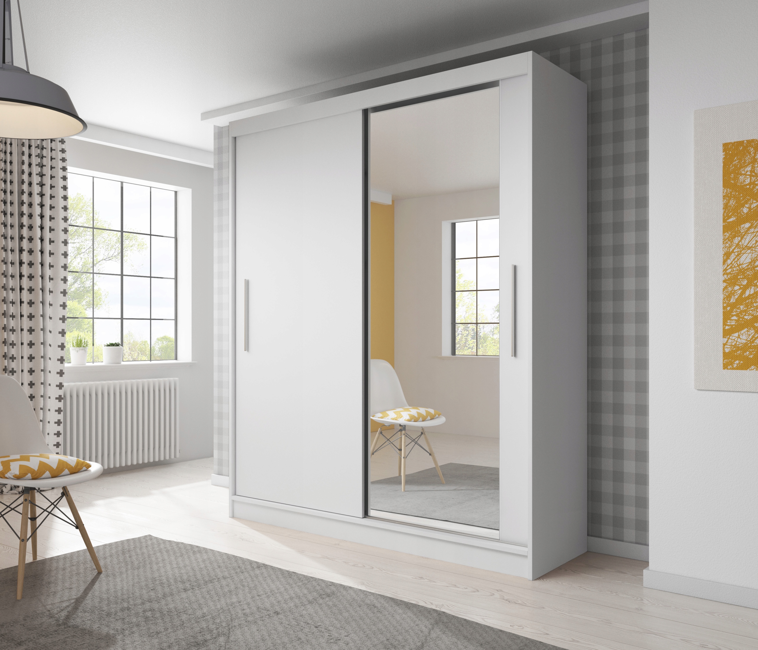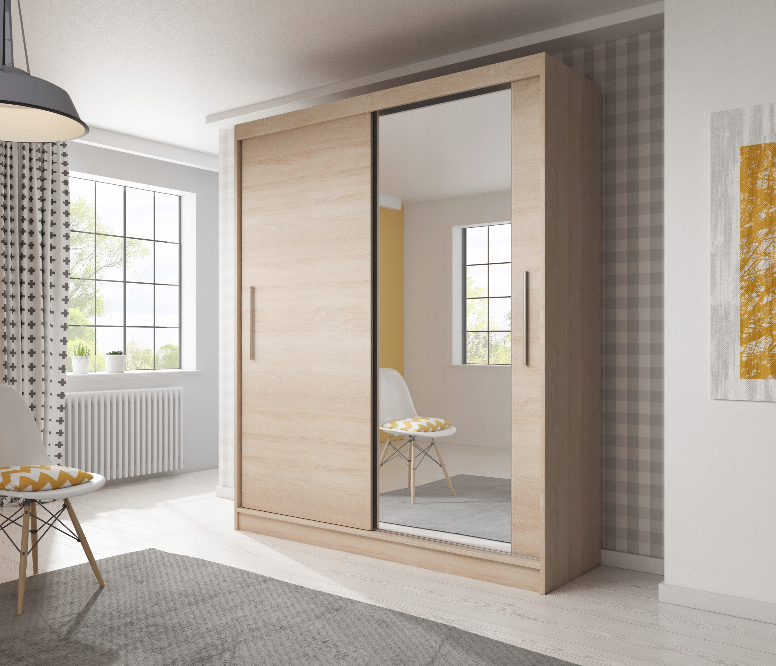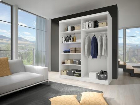 - W szafie zastosowany został system drzwi przesuwnych dzięki któremu drzwi płynnie, lekko i bez żadnego problemu się przesuwają. Doskonale sprawdzi się w sypialni, przedpokoju lub korytarzu.