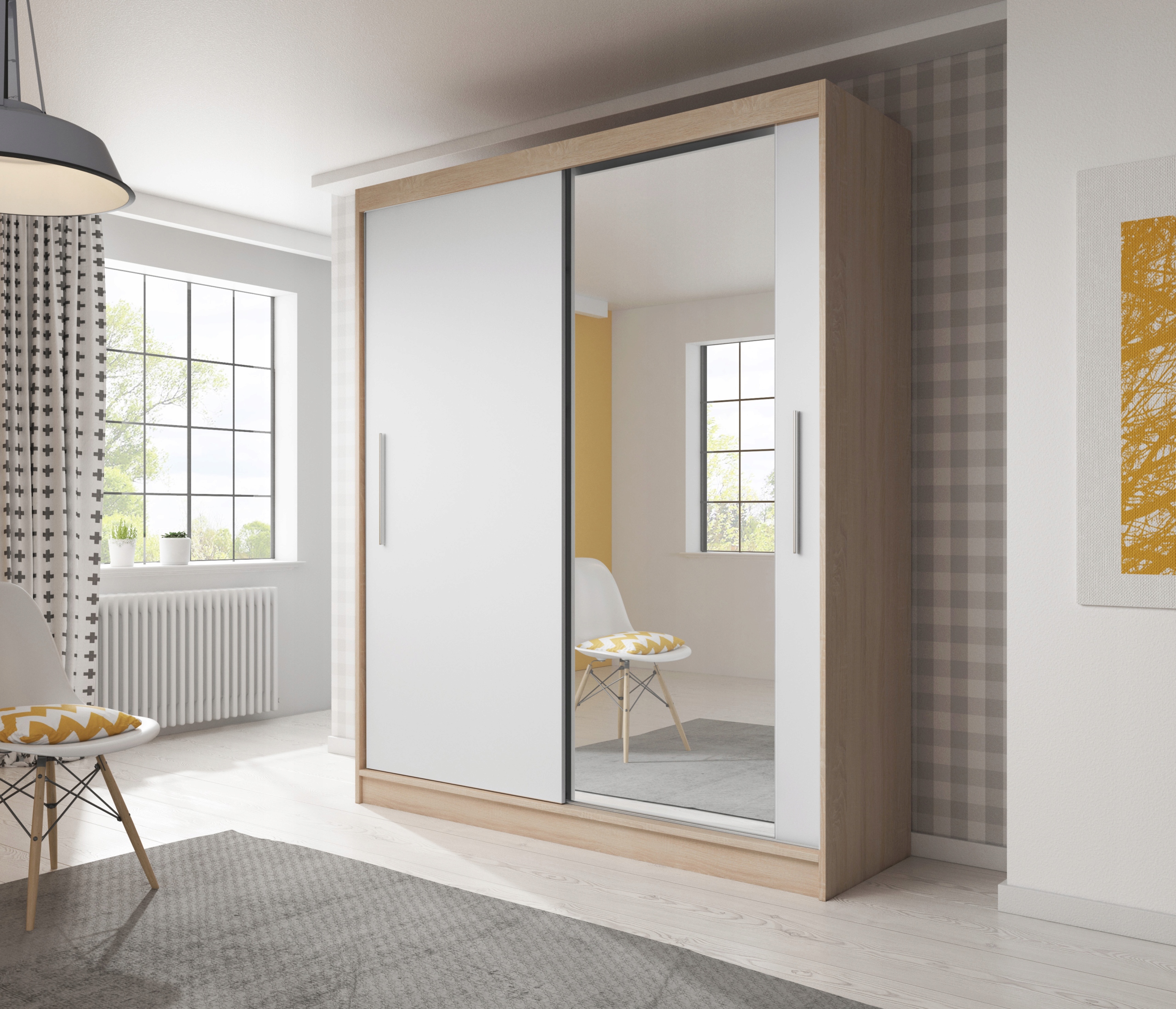- Modne zestawienia kolorystyczne oraz funkcjonalność mebla pozwolą dopasować szafę do wielu wnętrz.