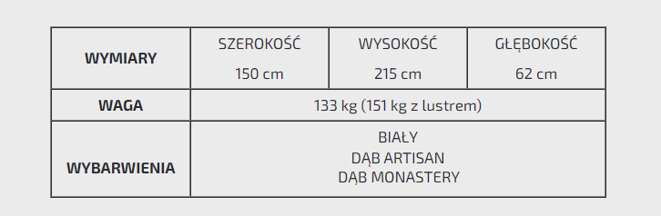 - Szafa została wykonana z płyty laminowanej o grubości 16 mm o podwyższonej odporności na zarysowania.