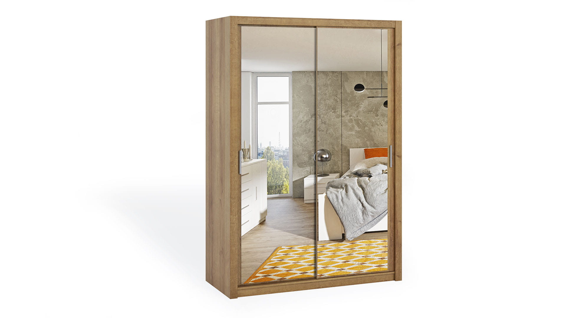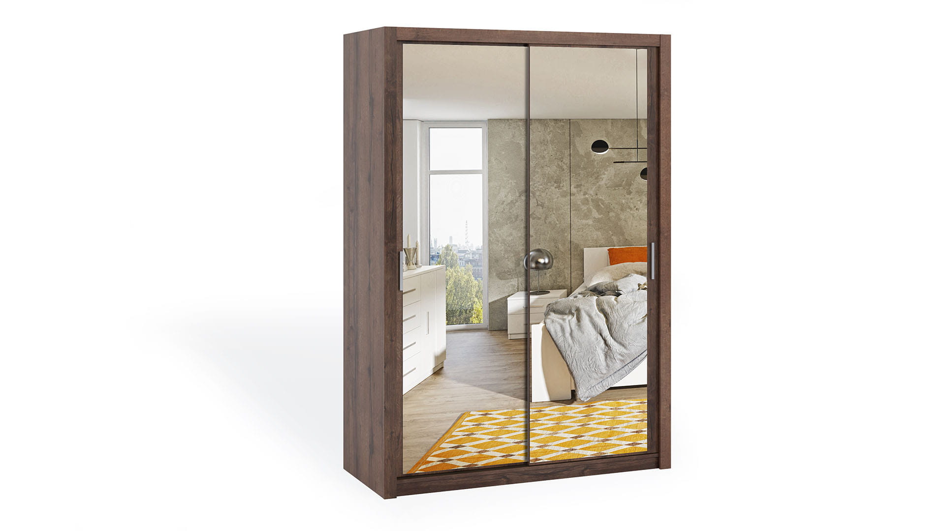 - Szafa posiada 2 drzwi przesuwne oraz tafle lustra