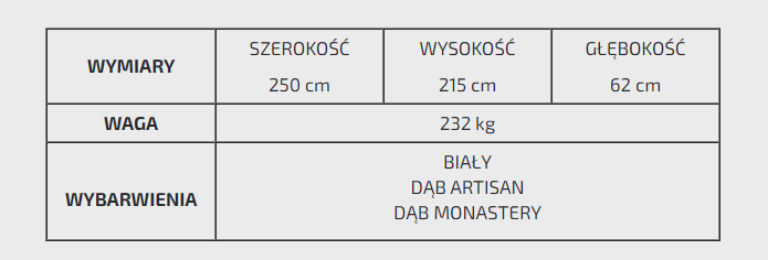 - Wysokość: 215 cm