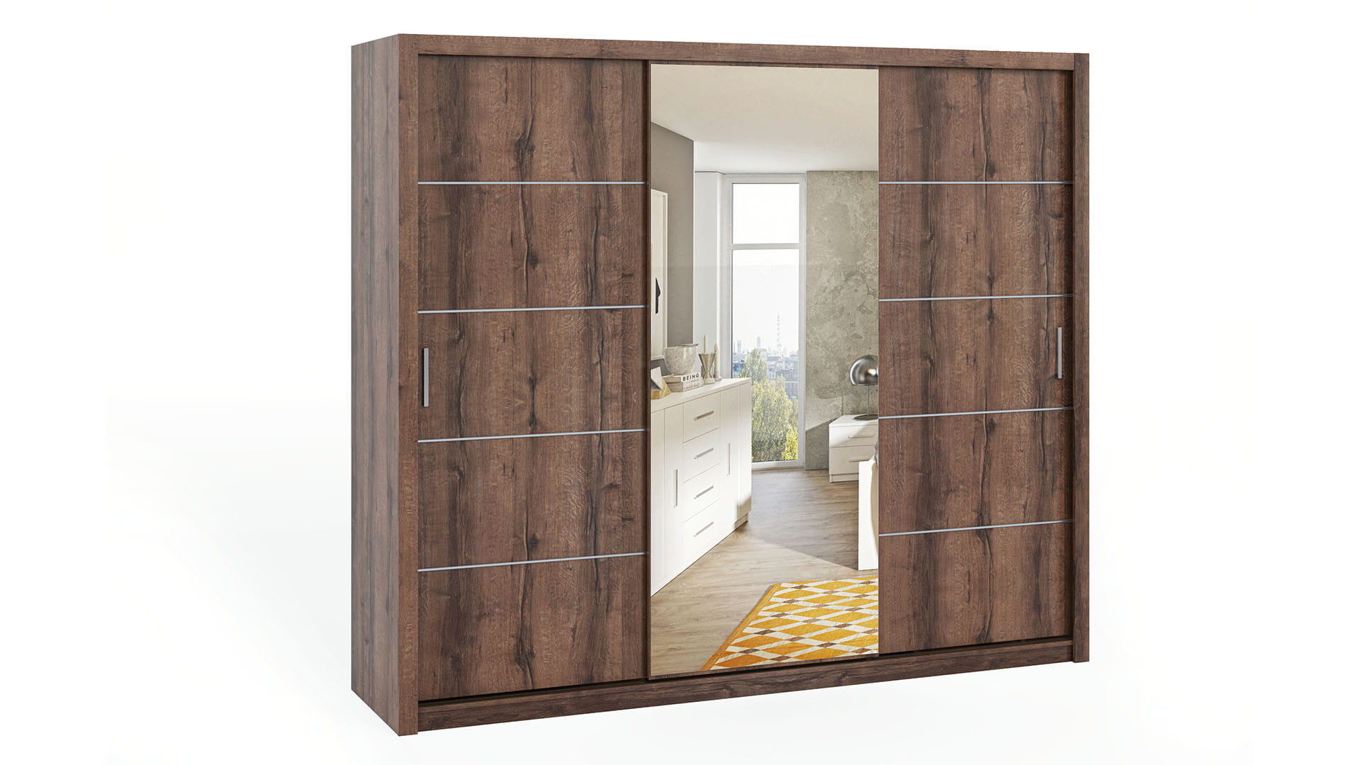 - Szafa posiada 2 drzwi przesuwne oraz lustro