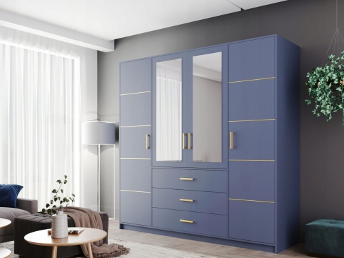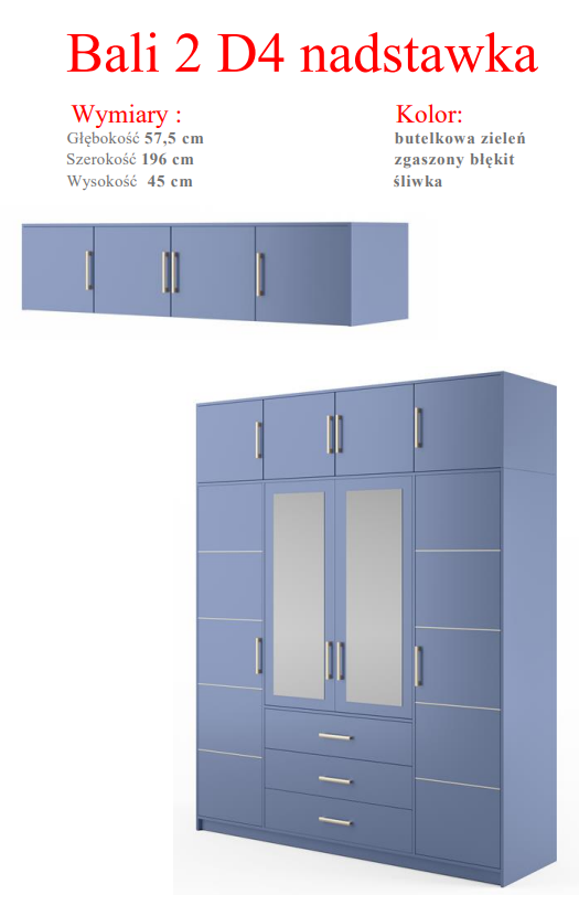 PONIŻEJ PRZEDSTAWIONA SZAFA W KOLORYSTYCE: ZGASZONY BŁĘKIT / ZGASZONY BŁĘKIT + LUSTRO