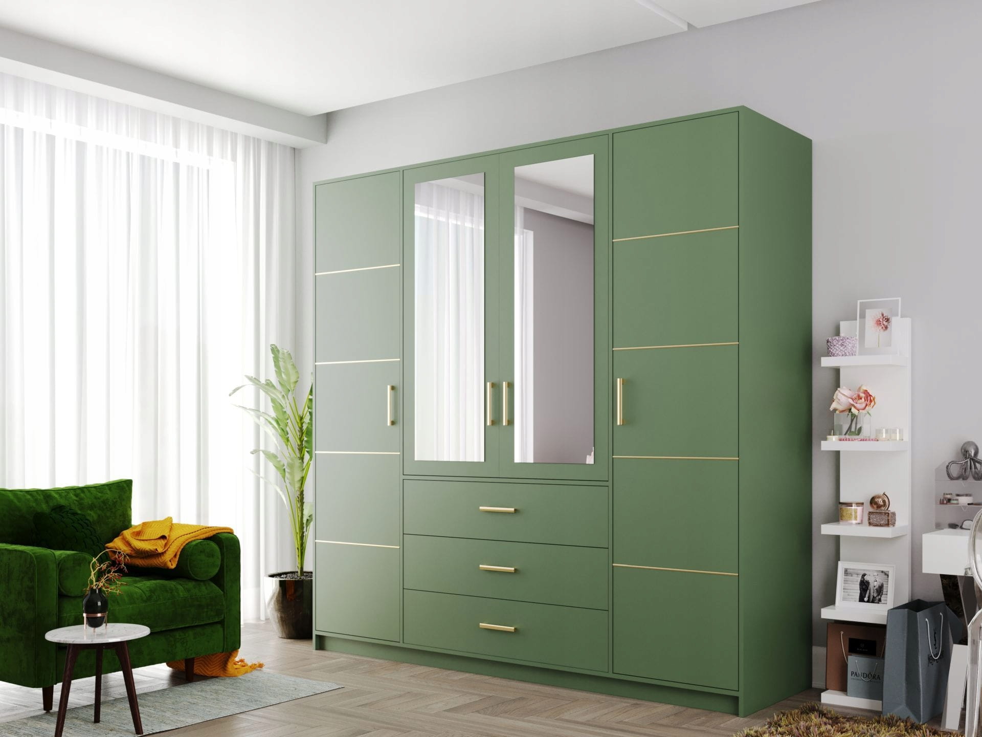 PONIŻEJ PRZEDSTAWIONA SZAFA W KOLORYSTYCE: BUTELKOWA ZIELEŃ / BUTELKOWA ZIELEŃ + LUSTRO