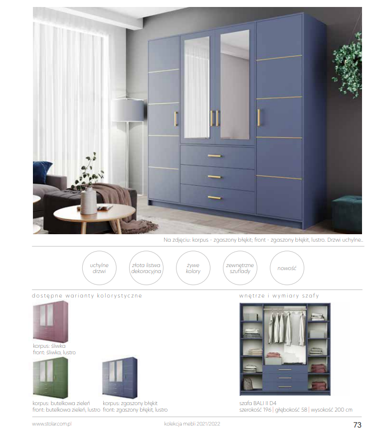 - Szafa występuje w 3 kolorach.