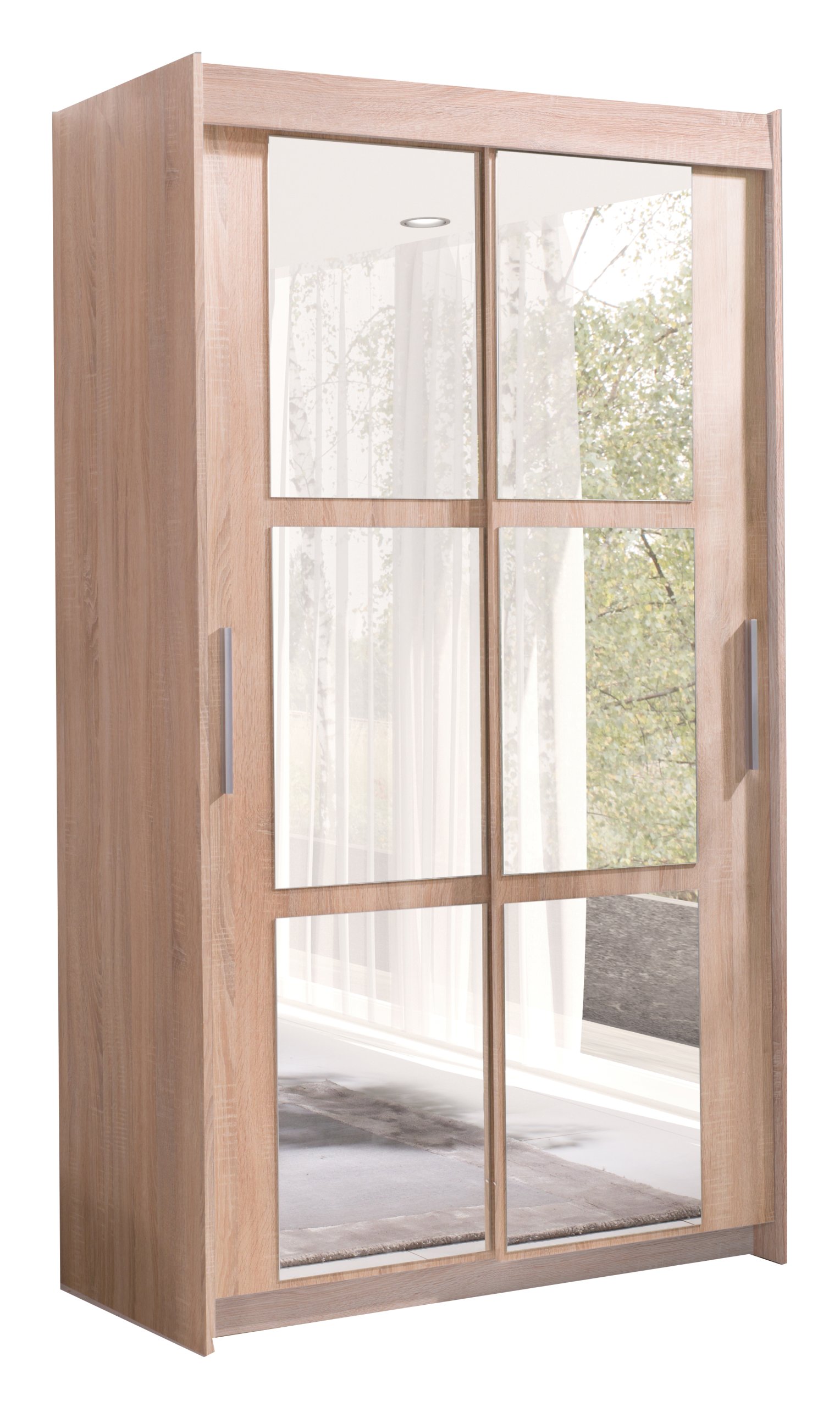 - W szafie zastosowany został bardzo solidny system drzwi przesuwnych , dzięki któremu drzwi płynnie, lekko i bez żadnego problemu się przesuwają. Szafa posiada również aluminiowe rączki, które jeszcze bardziej podkreślają jej nowoczesny wygląd oraz poprawiają jej funkcjonalność.