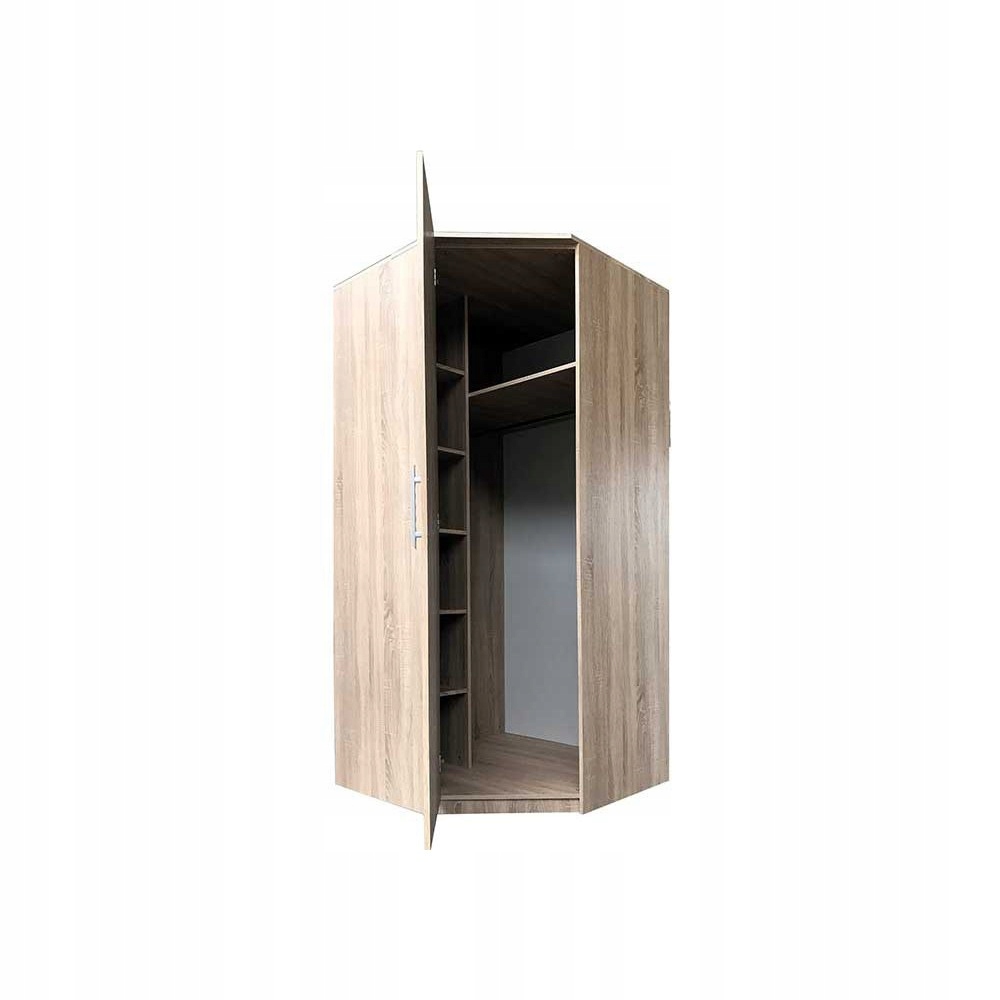 - Szafa posiada drzwi otwierane tradycyjnie, wyposażona w półki i drążek ubraniowy.