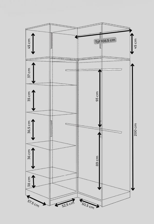 - Szafa narożna Bali to inteligentne i stylowe rozwiązanie, idealne do optymalnego wykorzystania przestrzeni w narożnikach pomieszczeń.