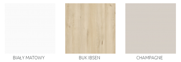 - Korpus oklejony jest obrzeżem ABS, a listwa wykonana jest z płyty MDF.