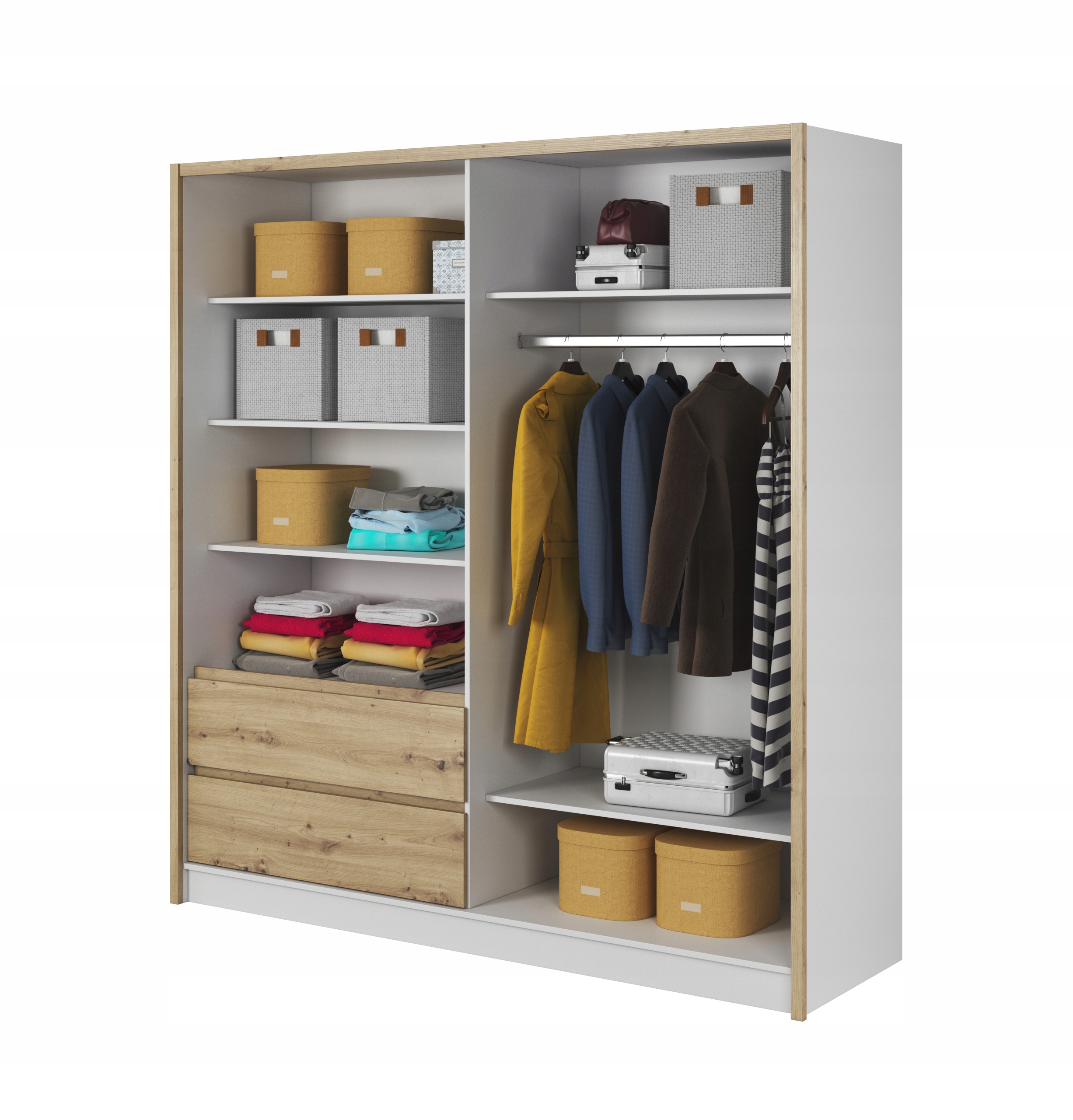 - Posiada drzwi przesuwne, uchylne oraz 2 szuflady