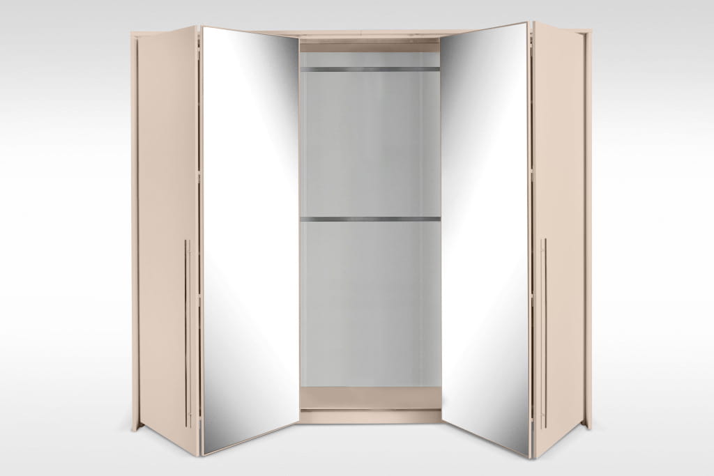 - Dzięki konstrukcji z frontami przesuwnymi otwieranie szafy jest wygodne i oszczędza miejsce w pomieszczeniu.