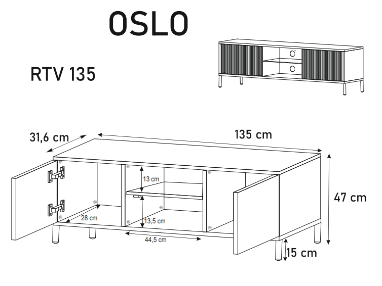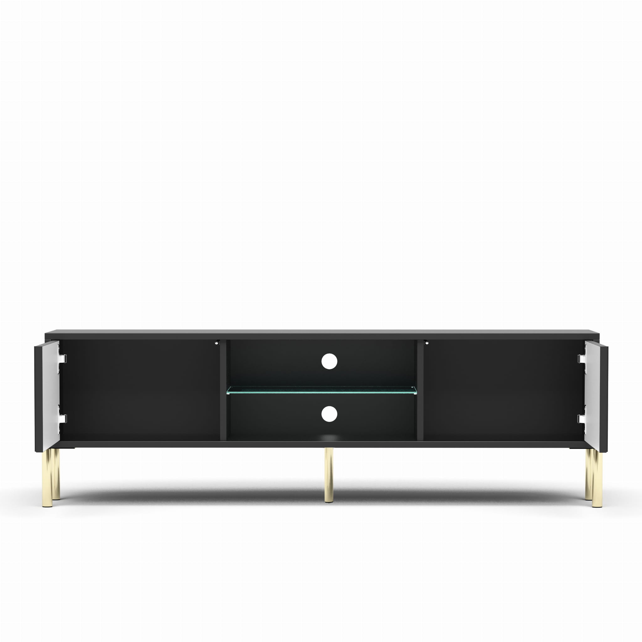 - Szafka RTV posiada 2 otwierane fronty z wolną przestrzenią wewnątrz.