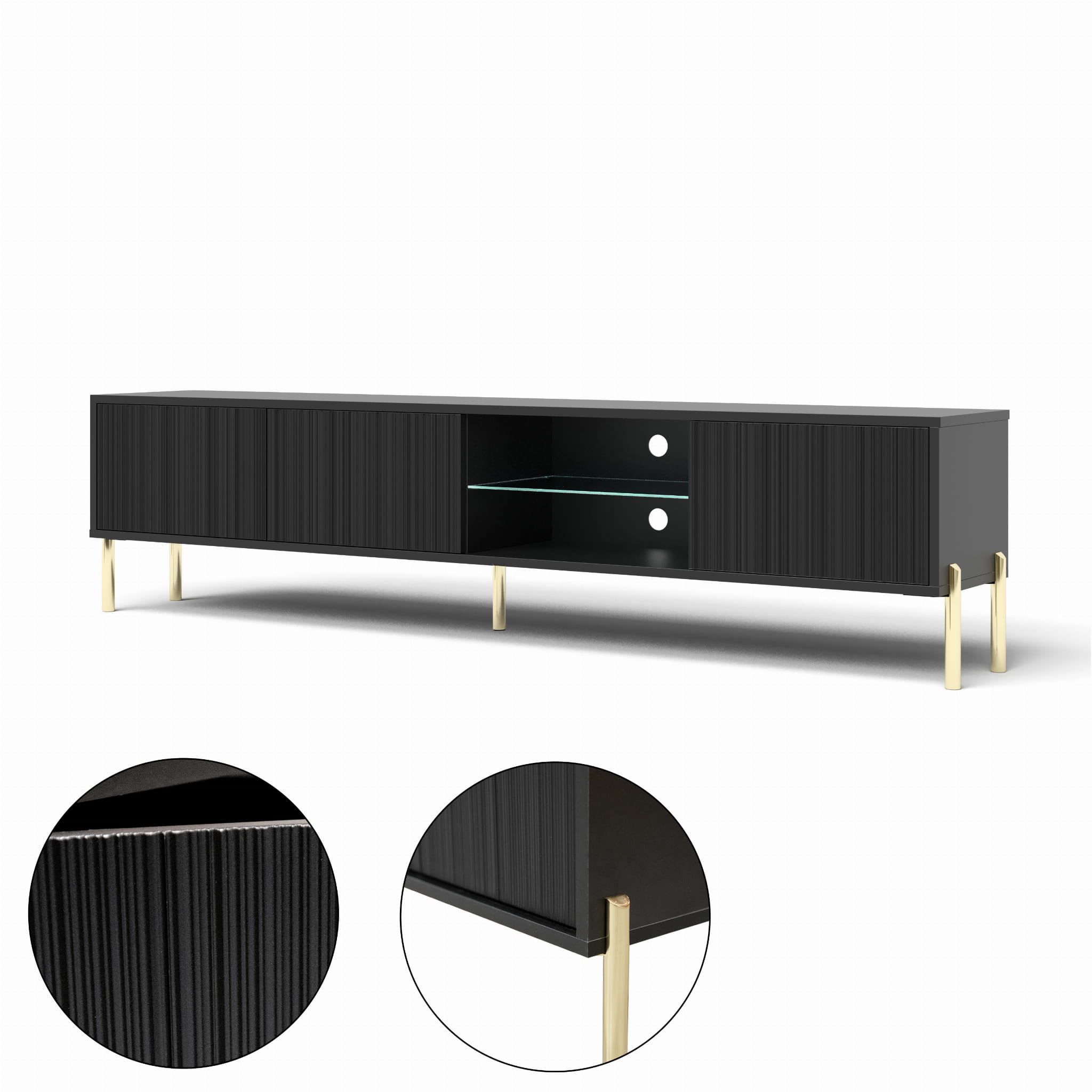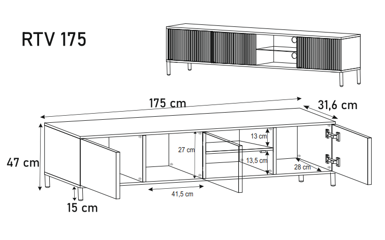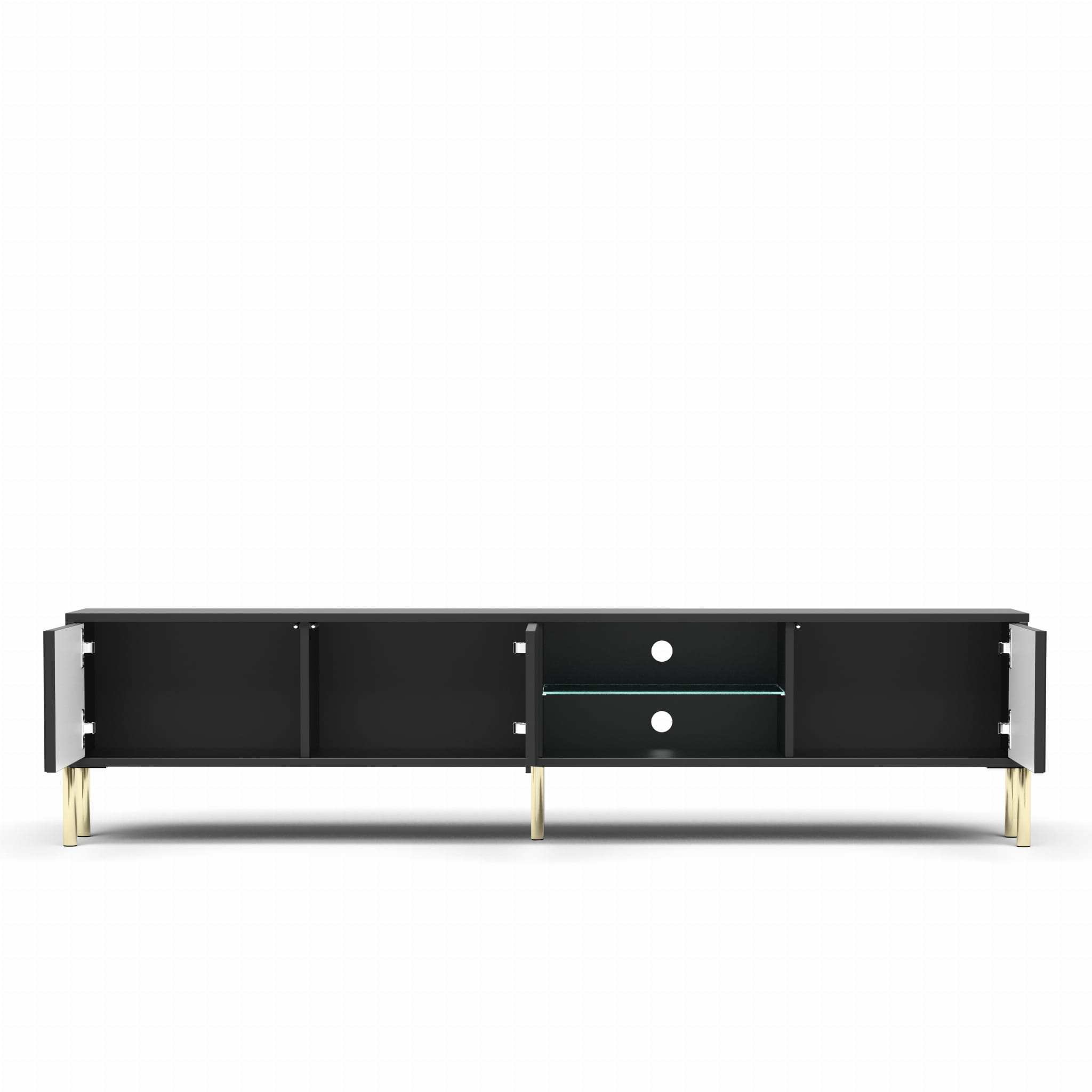 - Szafka RTV posiada 3 otwierane fronty z wolną przestrzenią wewnątrz.