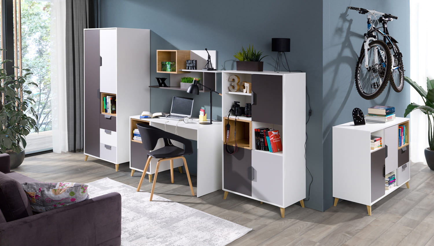 - BIAŁY/GRAFIT/SZARY/DĄB LEFKAS