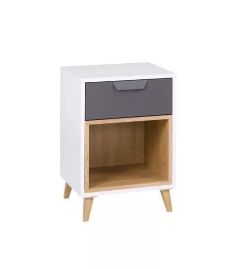 - Posiada w swoim wnętrzu szufladę oraz otwartą półkę.
