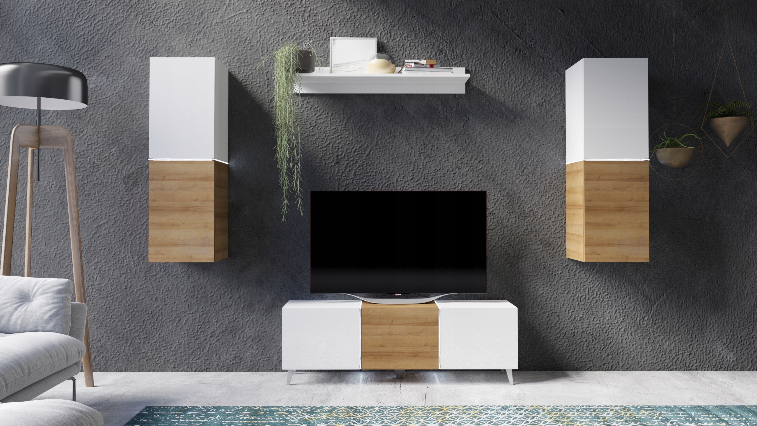 BIAŁY / BIAŁY POŁYSK + DĄB ZŁOTY