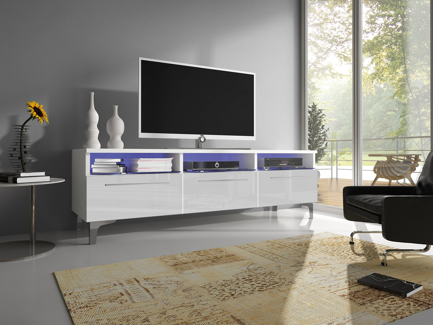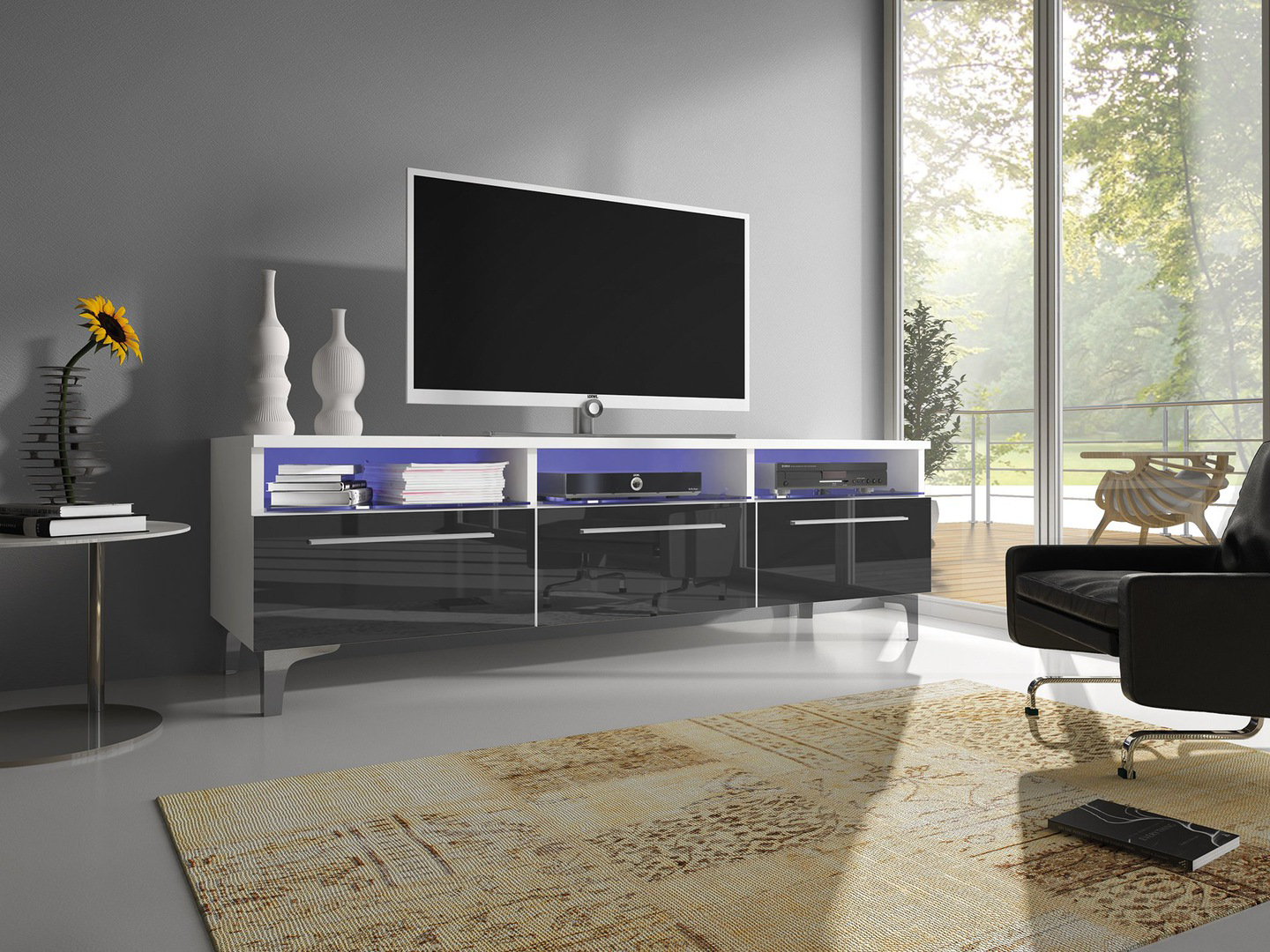 - Szafka RTV posiada uchwyty PVC