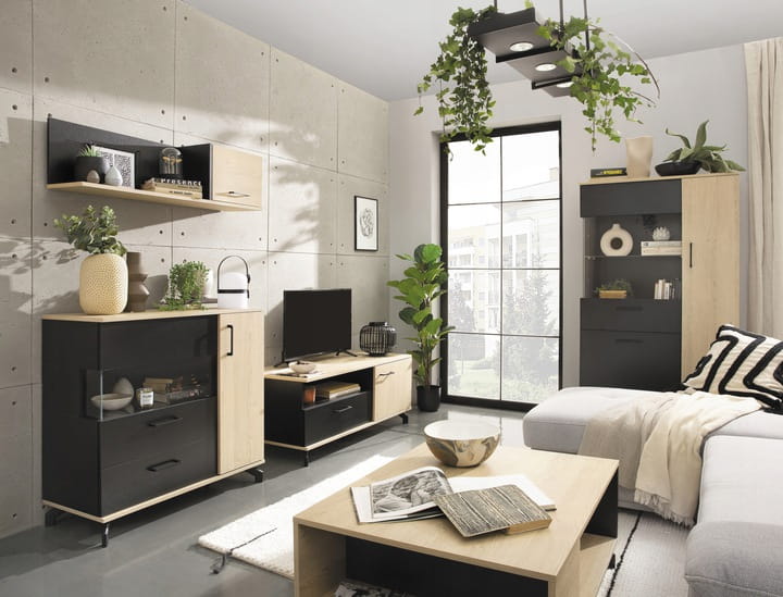 - Szafka RTV wyposażona w 3 drzwi uchylne.