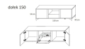 - Szafka RTV wykonana z płyty laminowanej grubości 16mm o podwyższonej odporności na zarysowania.