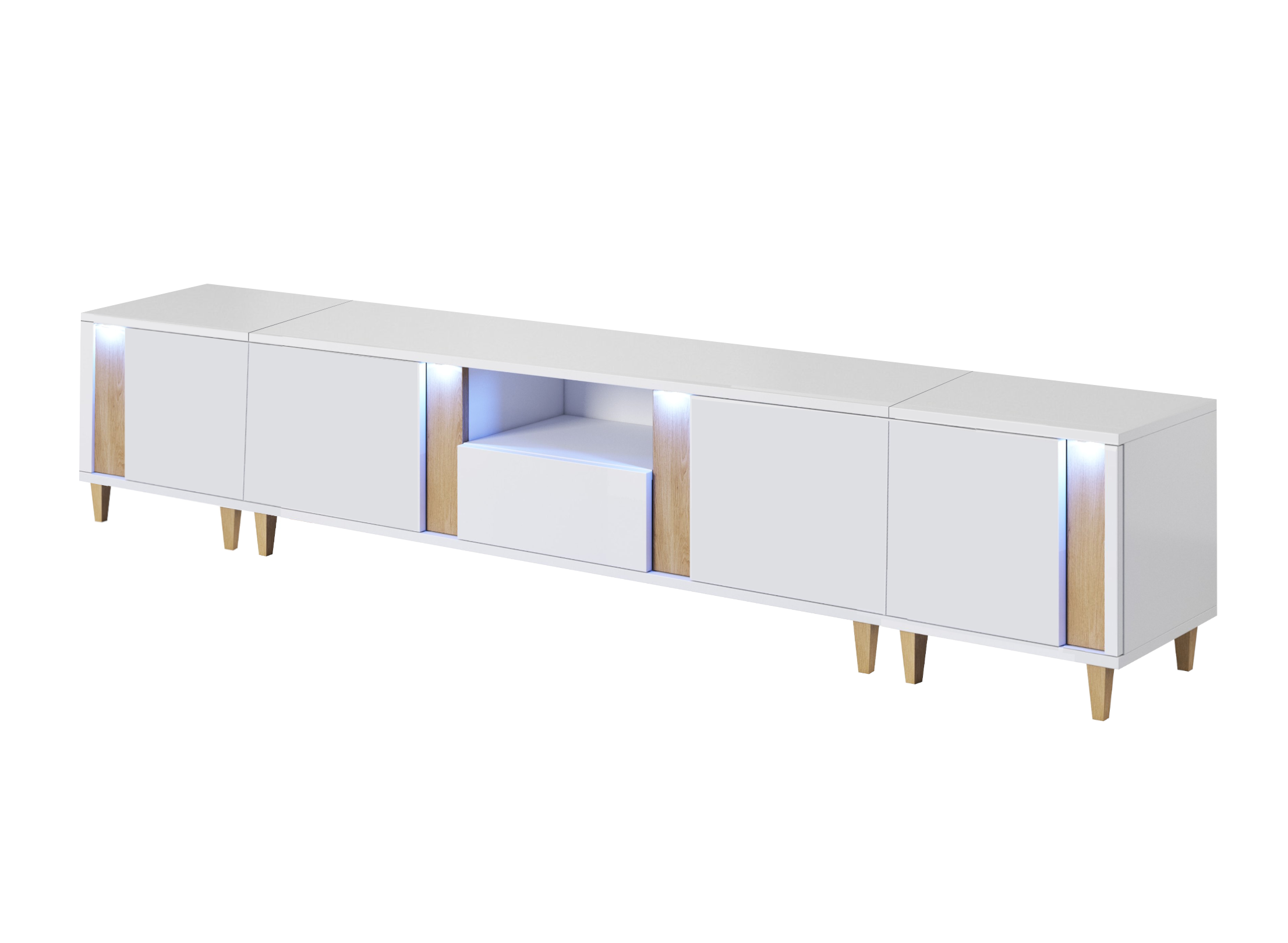 - KORPUS: Biały, FRONT: Biały Połysk + Okleina naturalna