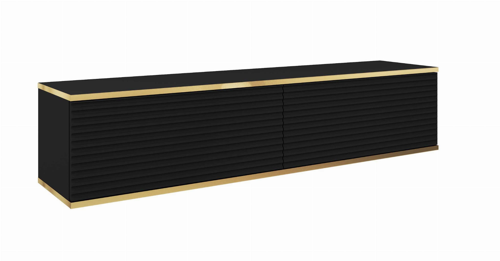 - Szafka RTV wykonana z płyty laminowanej o grubości 16 mm o odporności na zarysowania oraz wilgoć. Korpus oklejony jest obrzeżem ABS. Fronty płyta MDF 18 mm.
