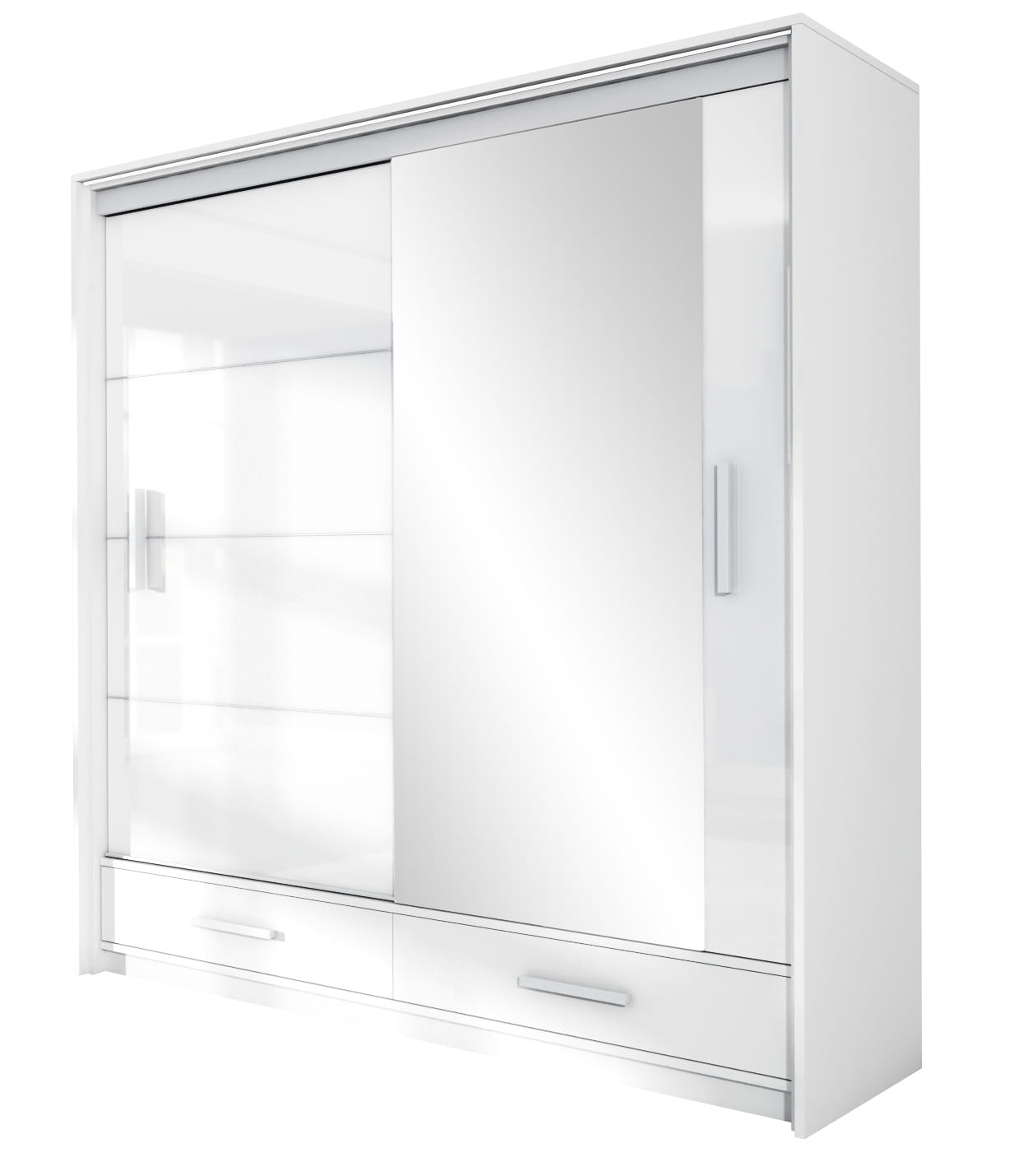 - Korpus: biały, Front: biały połysk+ lustro