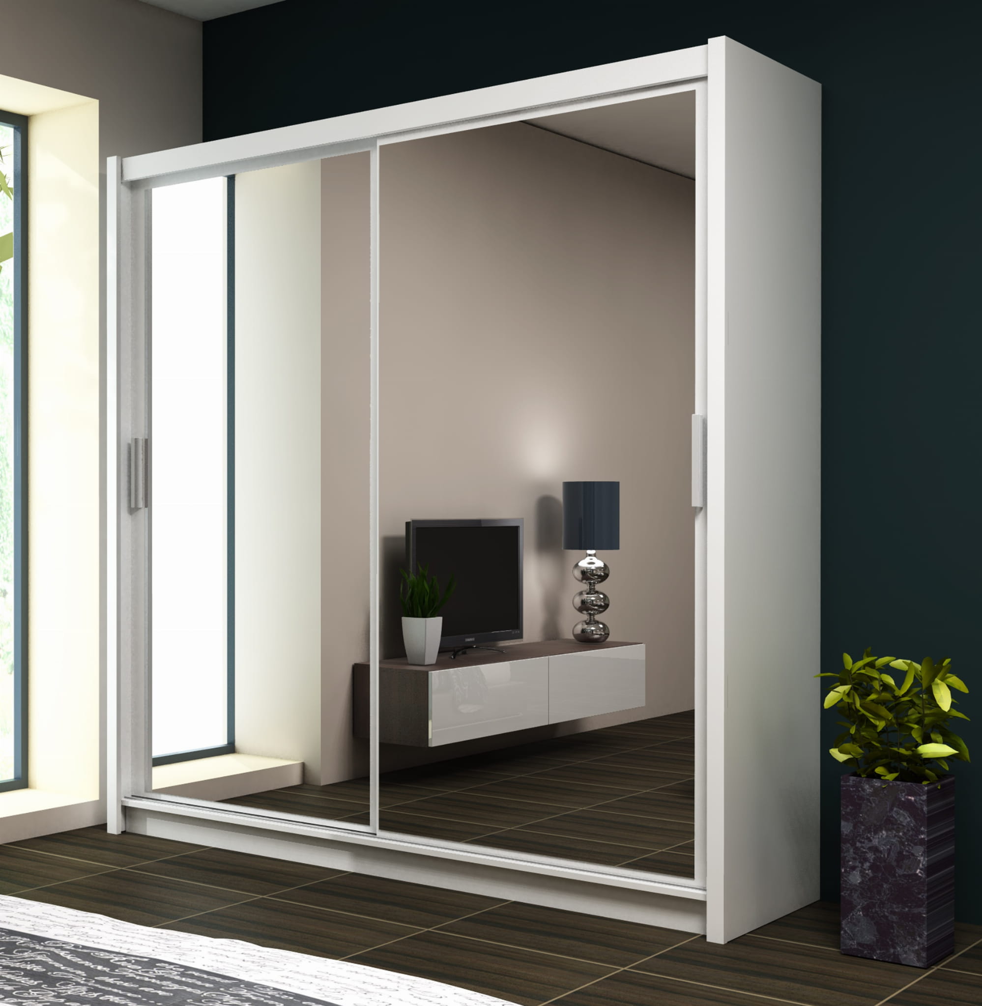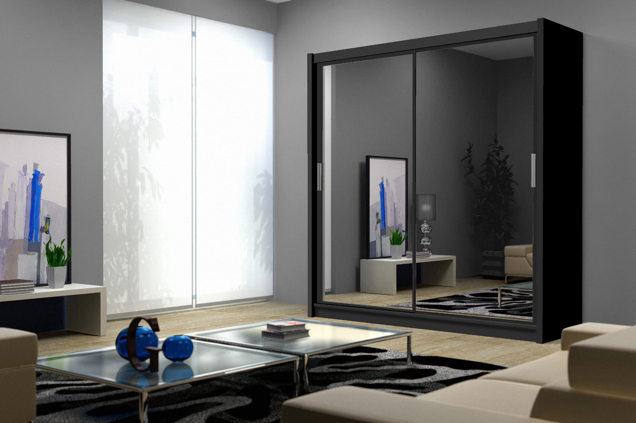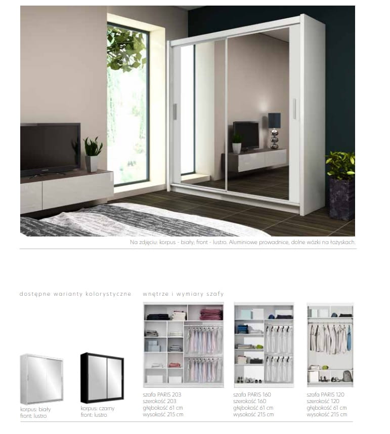 - Szafa posiada dwa przesuwne fronty (całkowicie pokryte lustrem).