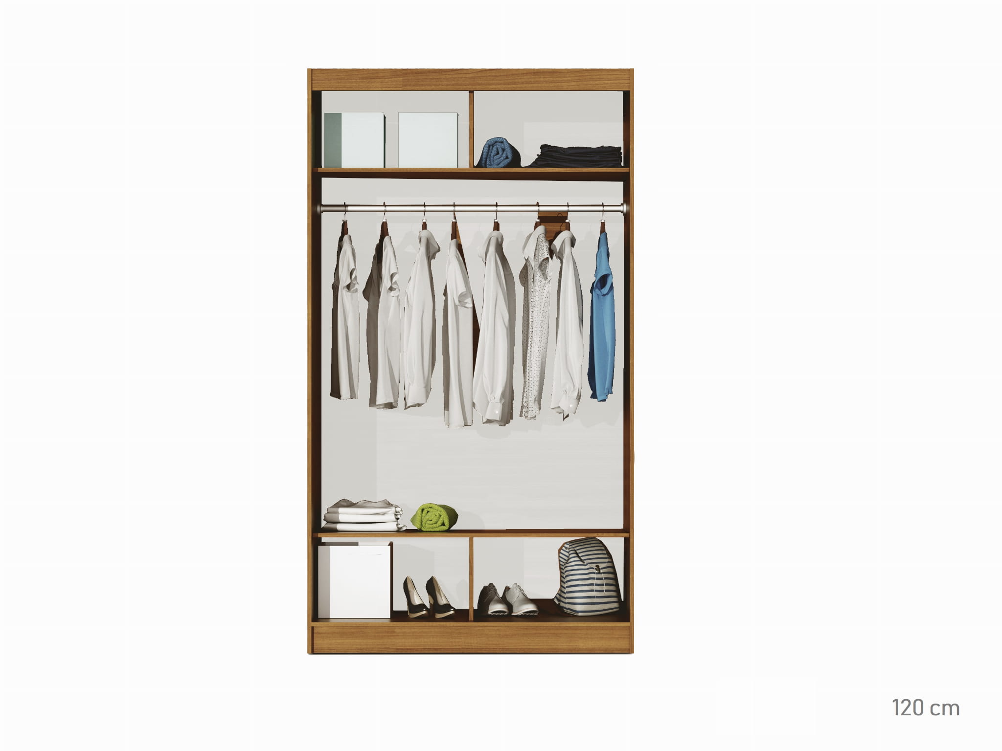 - W swoim wnętrzu posiada drążki na wieszaki oraz półki.