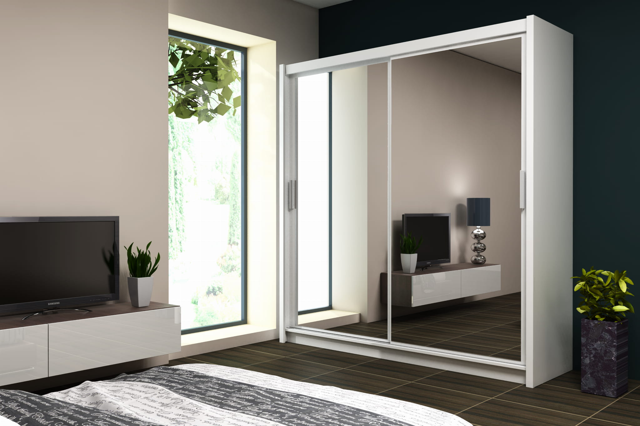 - Szafa posiada dwa przesuwne fronty (całkowicie pokryte lustrem).