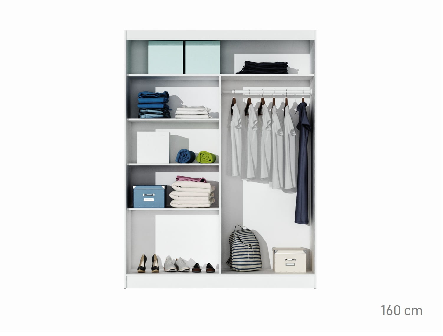 - W swoim wnętrzu posiada drążki na wieszaki oraz półki.