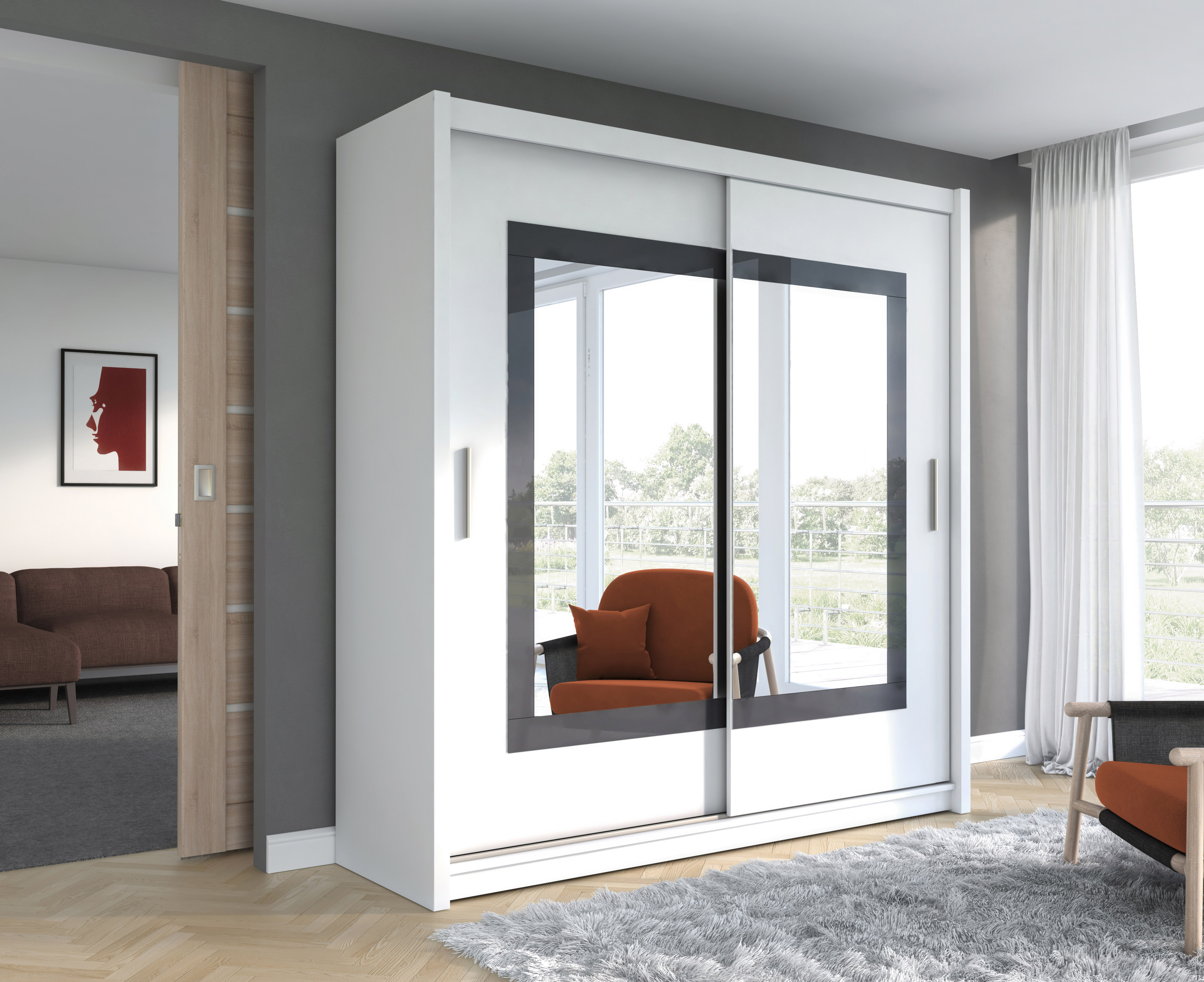 - Korpus: biały, Front: biały, szare szkło, lustro