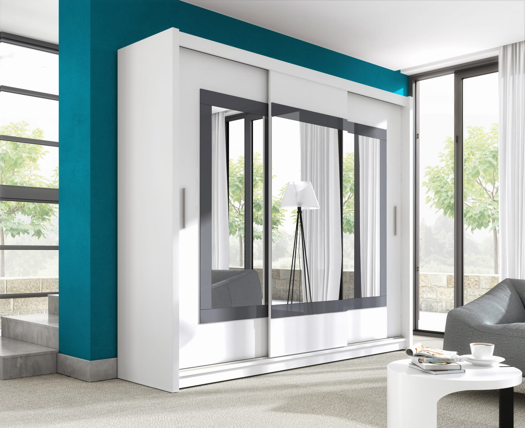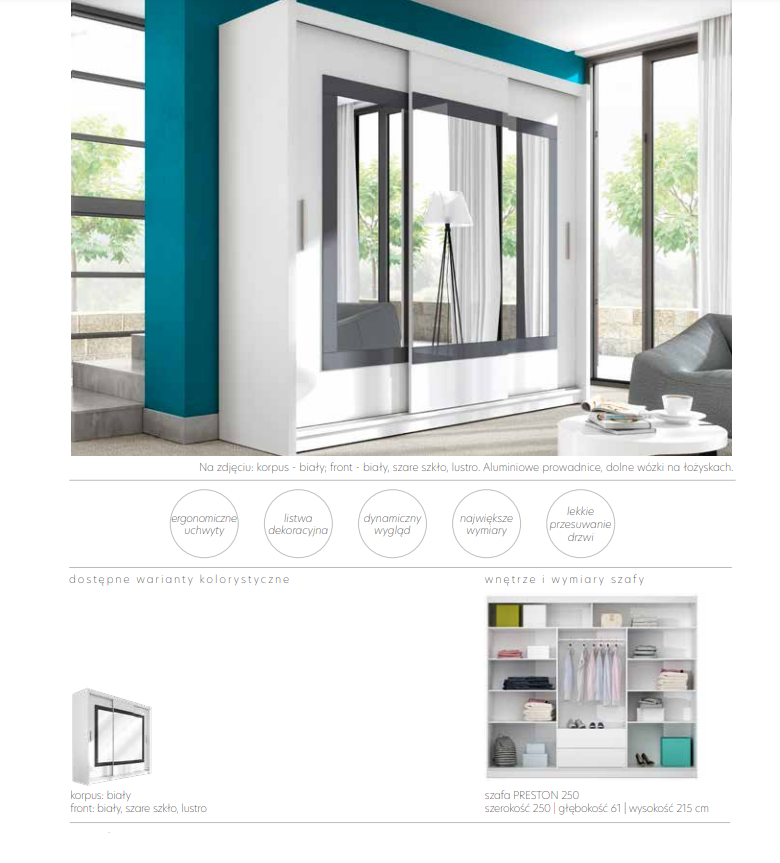 - Korpus:biały, Front: biały, szare szkło, lustro