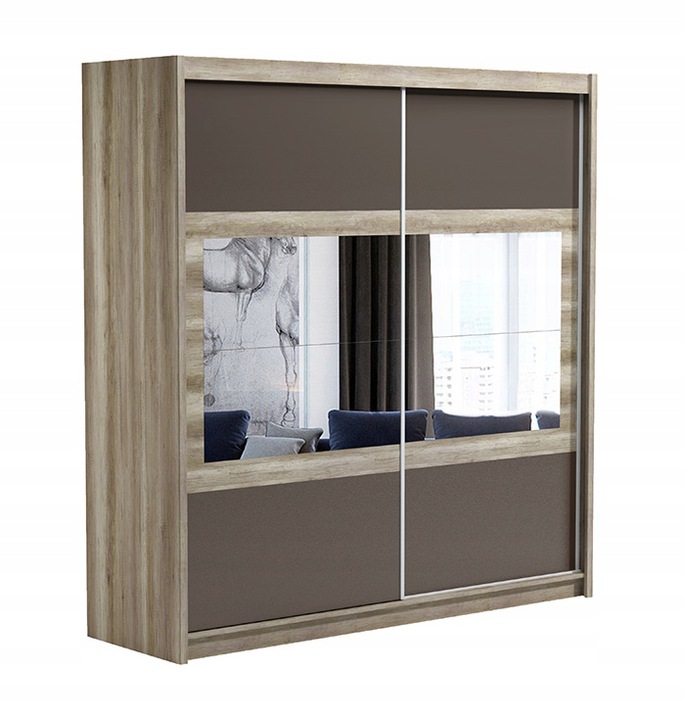- Szafa posiada dwa przesuwne fronty oraz listwę dekoracyjną.
