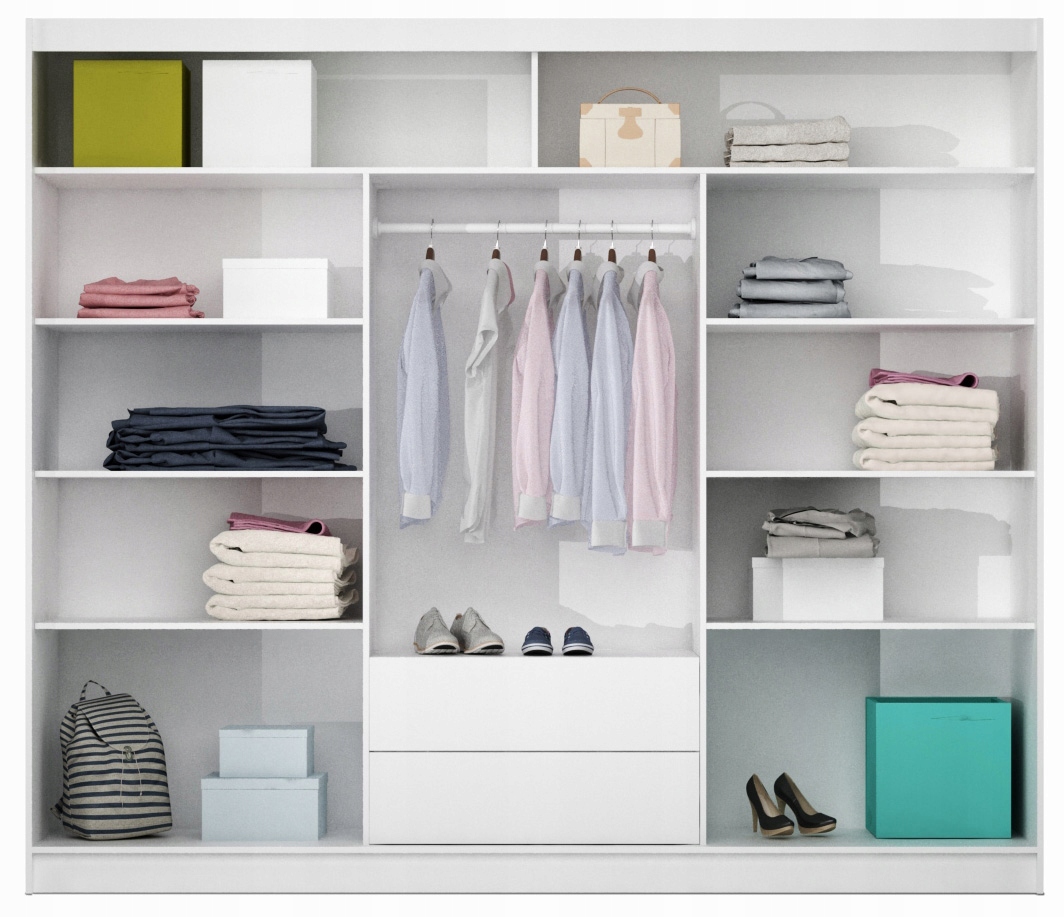 - W swoim wnętrzu posiada drążki na wieszaki oraz półki.