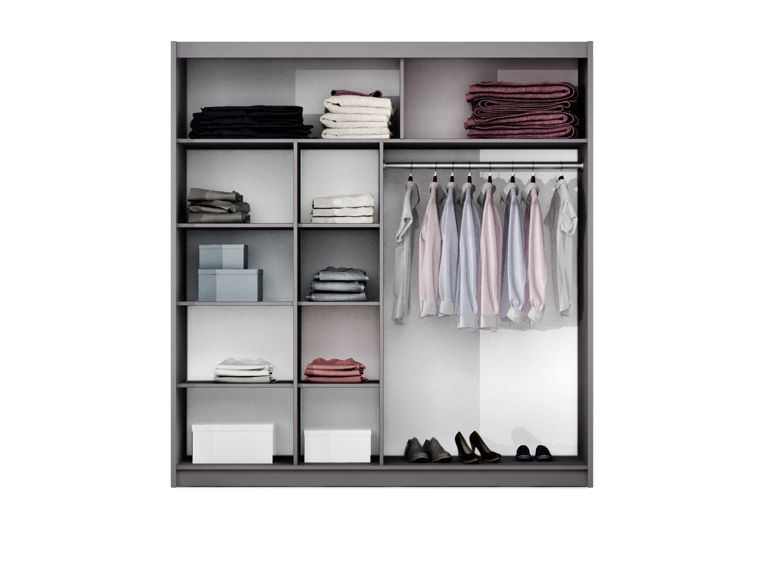 - W swoim wnętrzu posiada drążek na wieszaki oraz półki.