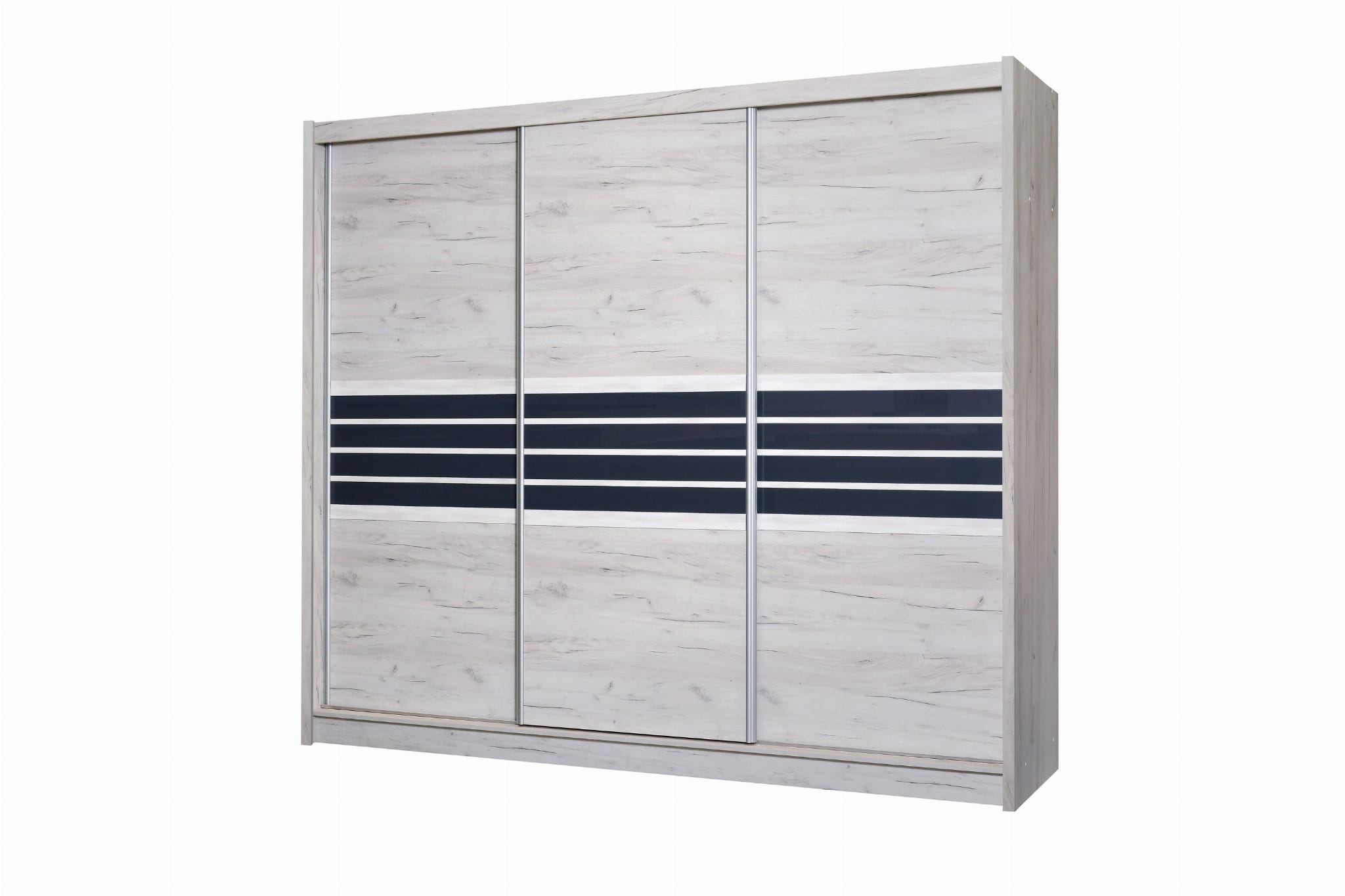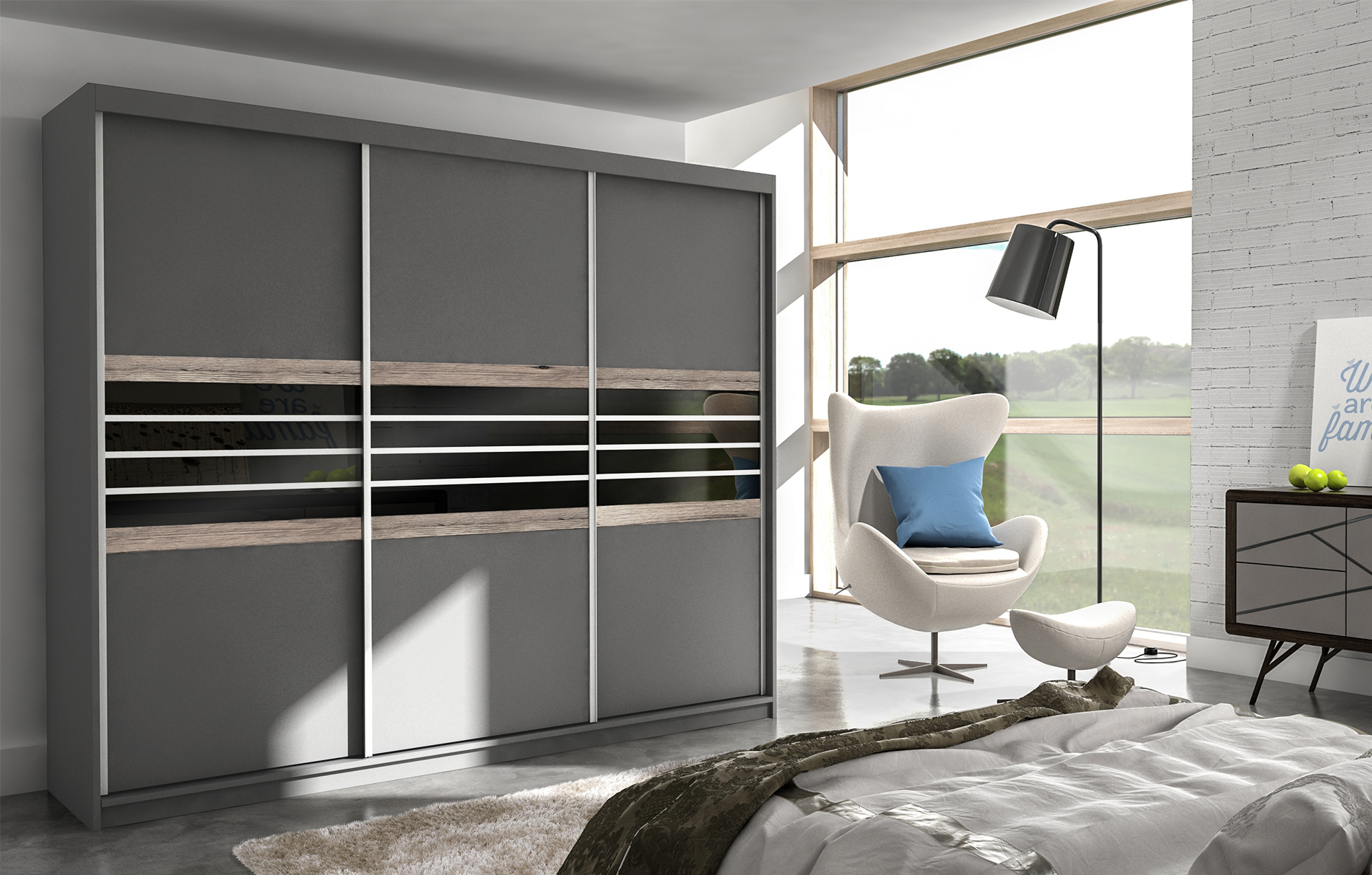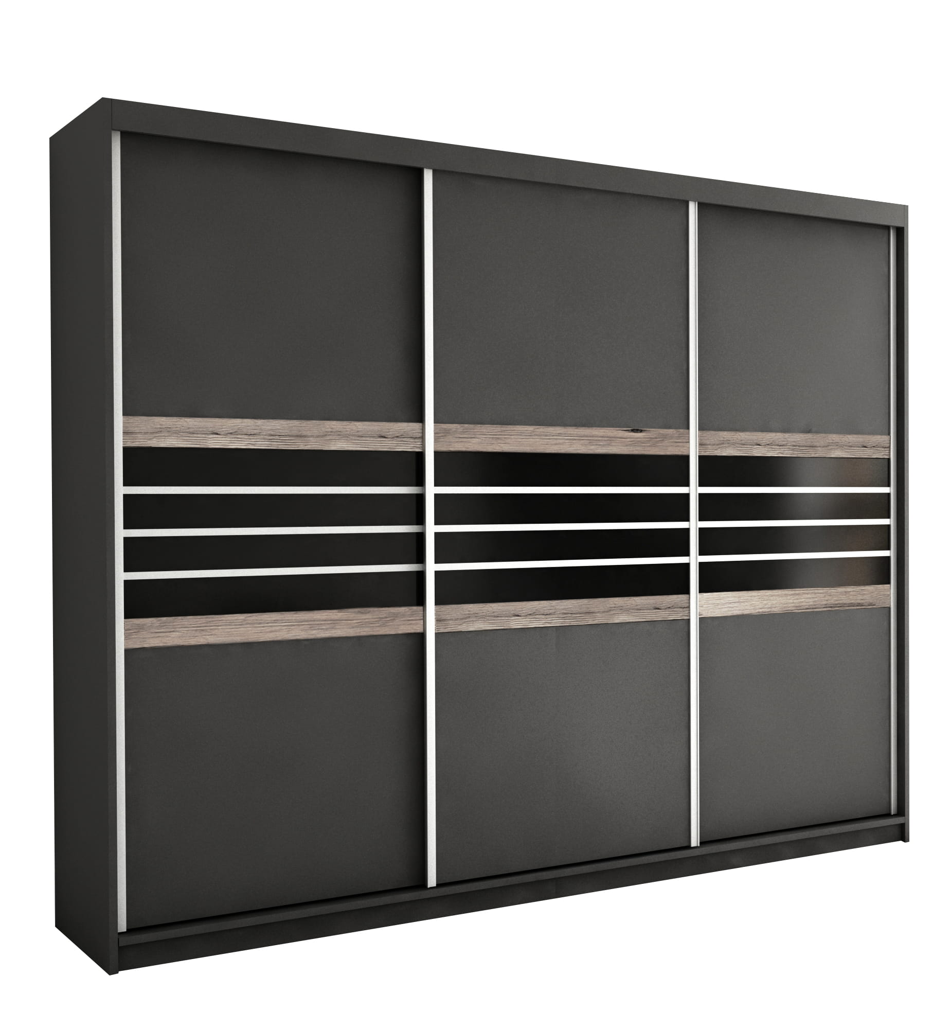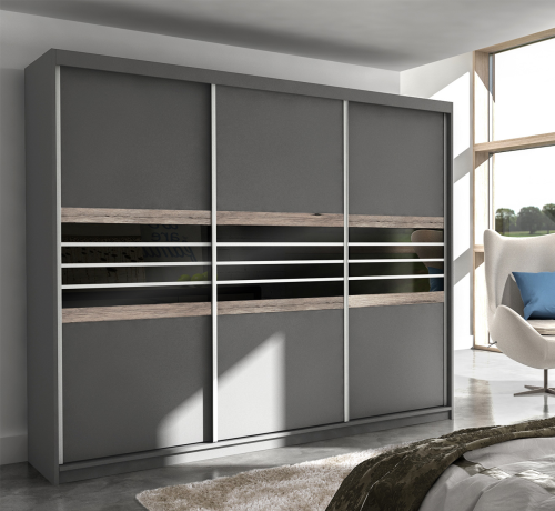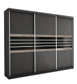 - Fronty mają zdobną teksturę, a na całej szerokości przecinają je dekory utworzone z pasów grafitowego lub czarnego szkła.