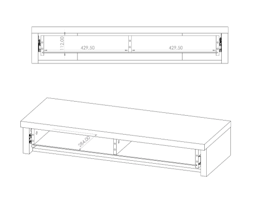 - Mebel wykonany z płyty wiórowej o grubości 32 mm (fornt korpus); 16 mm (plecy).