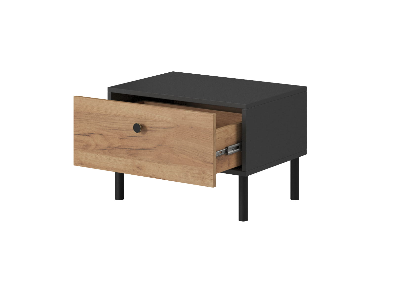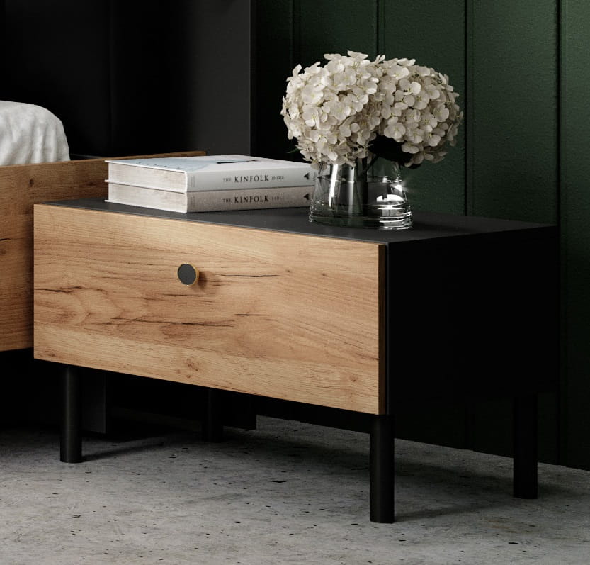 - Kolory systemu to antracyt w połączeniu z dębem craft złotym.