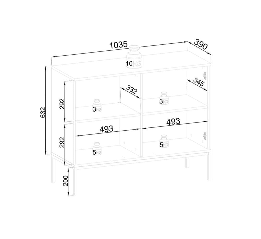 - Solidna konstrukcja z płyty laminowanej o grubości 16 mm, zapewniająca trwałość i wytrzymałość.
